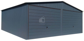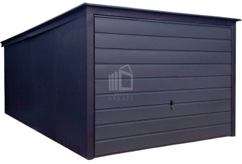 Plechová garáž 5×5 strecha dvojspádová (sedlová) – brána – antracit TS218 5×5