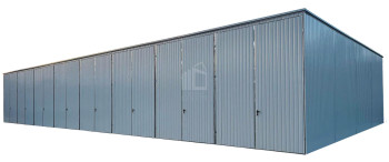 Plechová garáž – hala – 7×8 m – dvojkrídlové dvere – pozinkovaná – strecha spád dopredu TS853