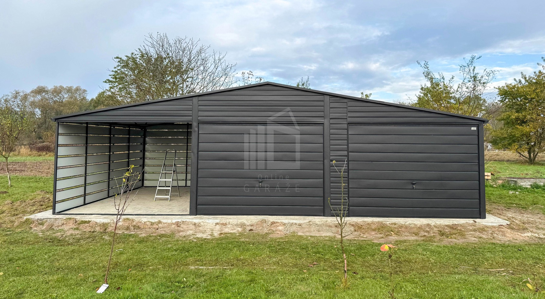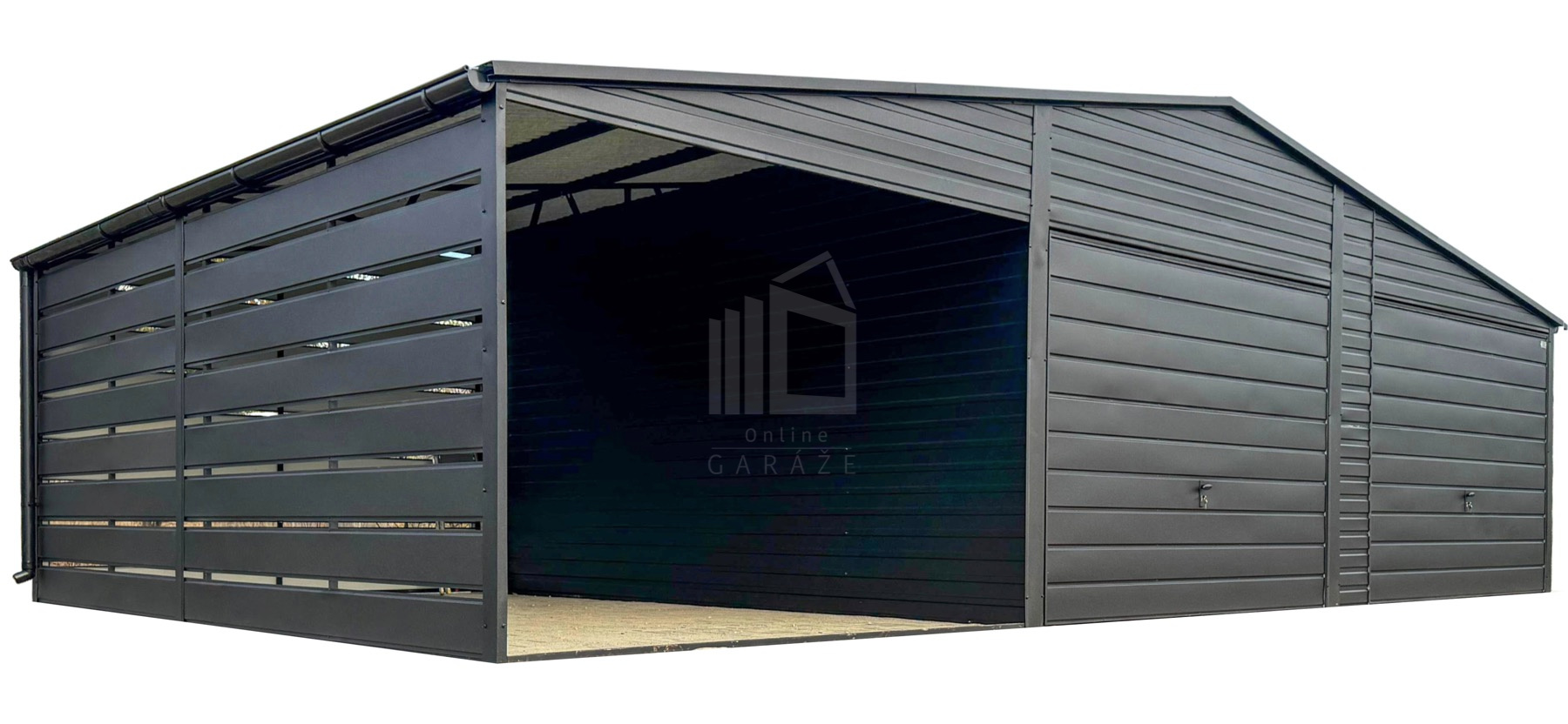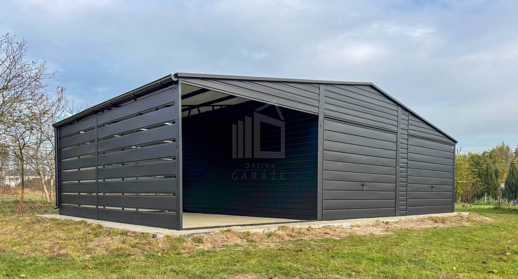 • prístrešok : 3,5×5 m bočná aj zadná stena – vodorovné lamely (panely) farba : antracit mat BTX 7016