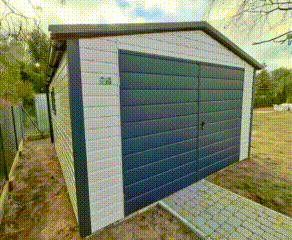 Plechová garáž 4×4 m – Dvojkrídlová brána – 2x okno – rýna okapová + zvod vody nadol – škridľoplech – Strieborná – Antracit – Sedlová strecha TS1076
