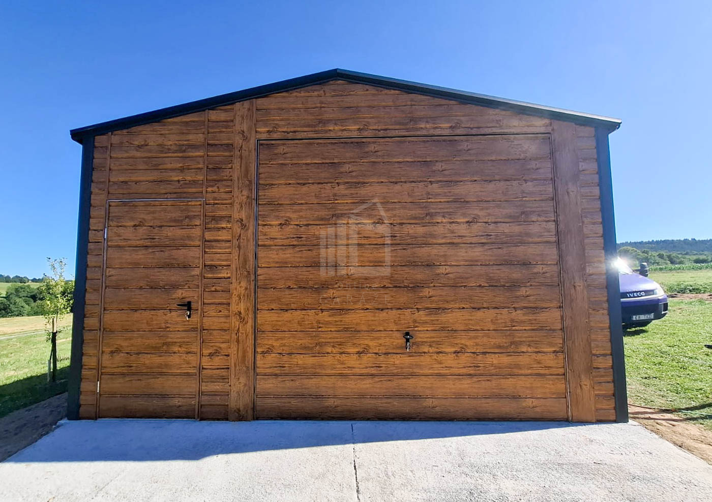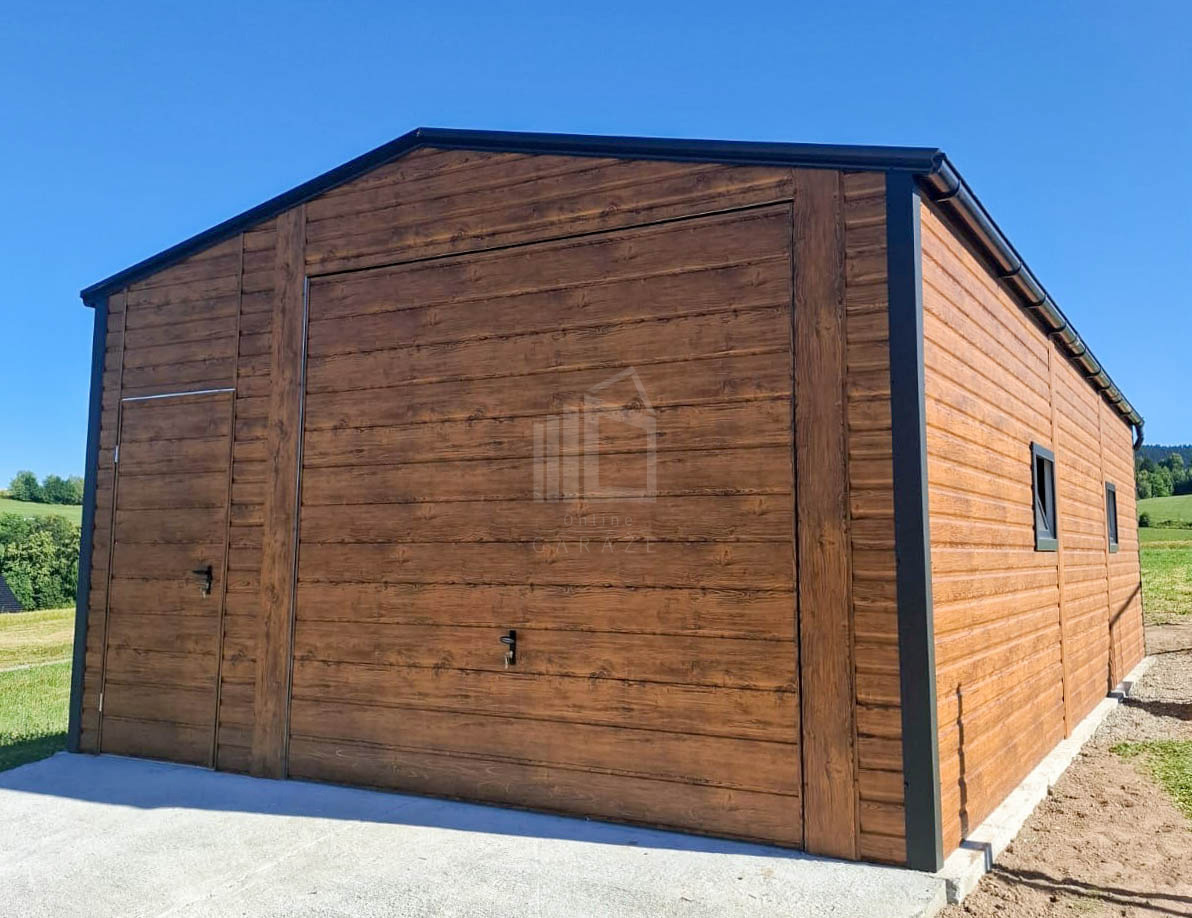 • výklopná brána 300 x 250 cm vodorovný trapéz T17 farba : orech svetlý