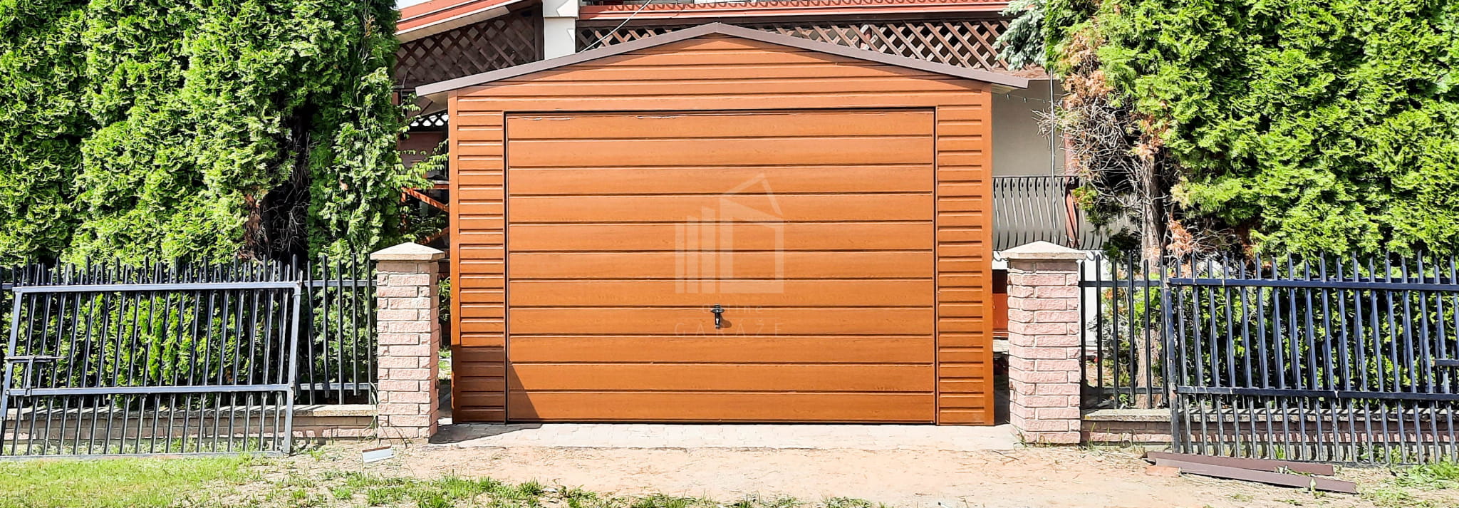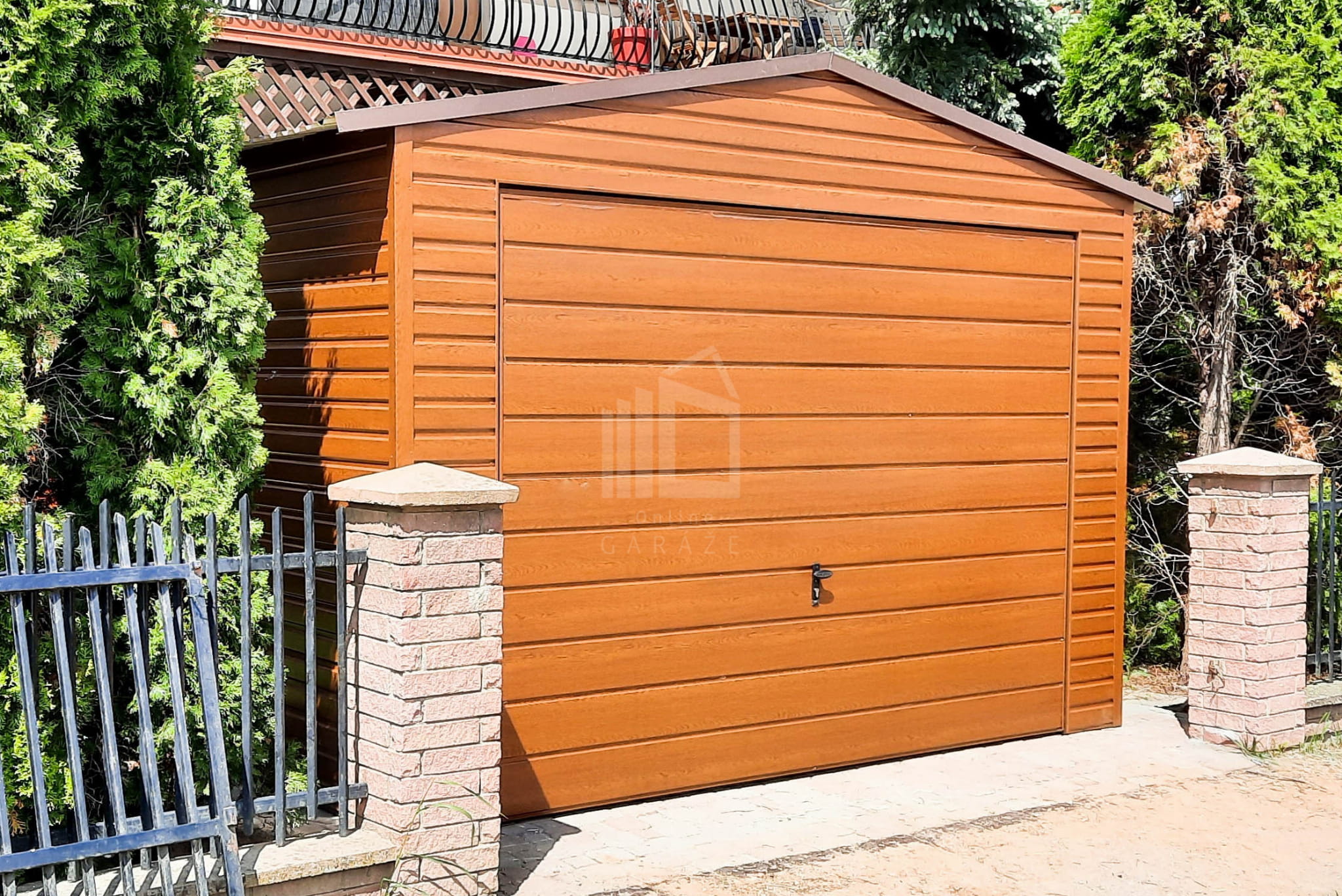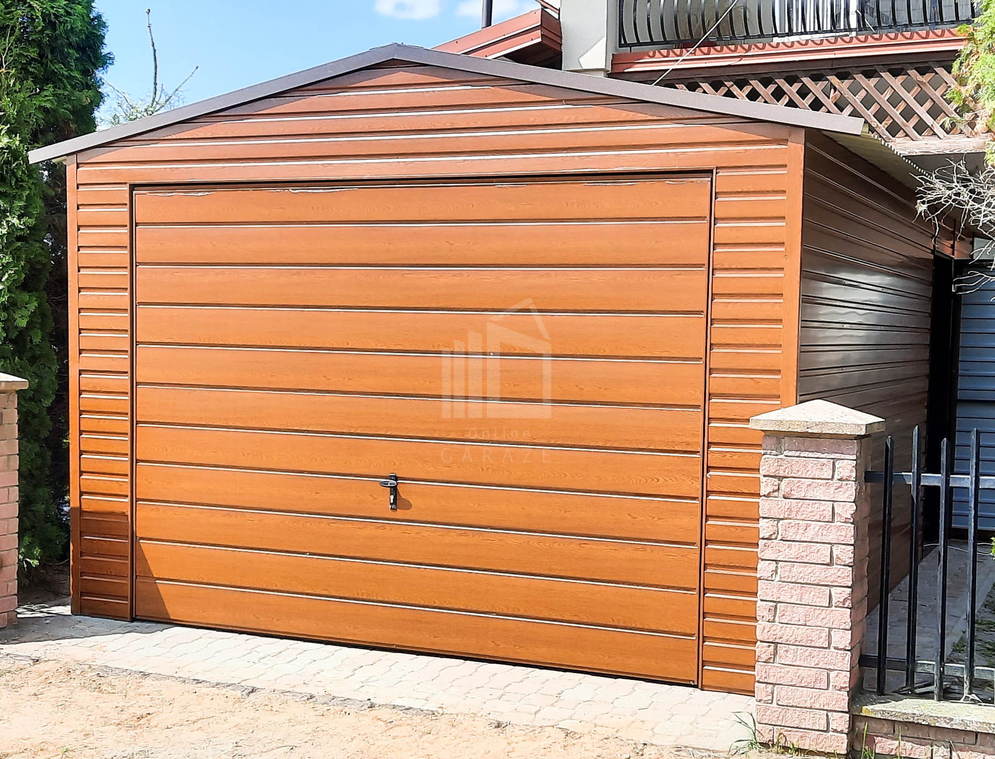 • výklopná brána – vodorovný trapéz T17 – zlatý dub