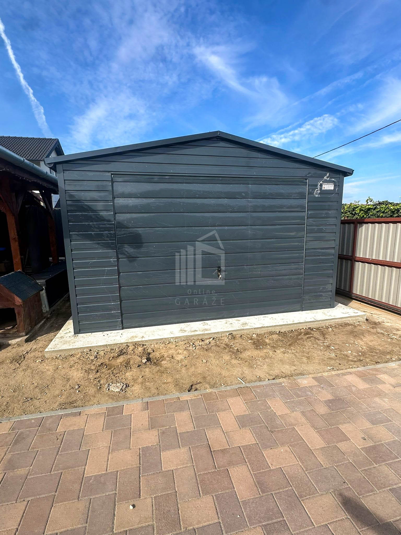 • výklopná brána 300×200 cm prelisy vodorovné T17, farba Tmavá grafitová Antracit RAL 7016