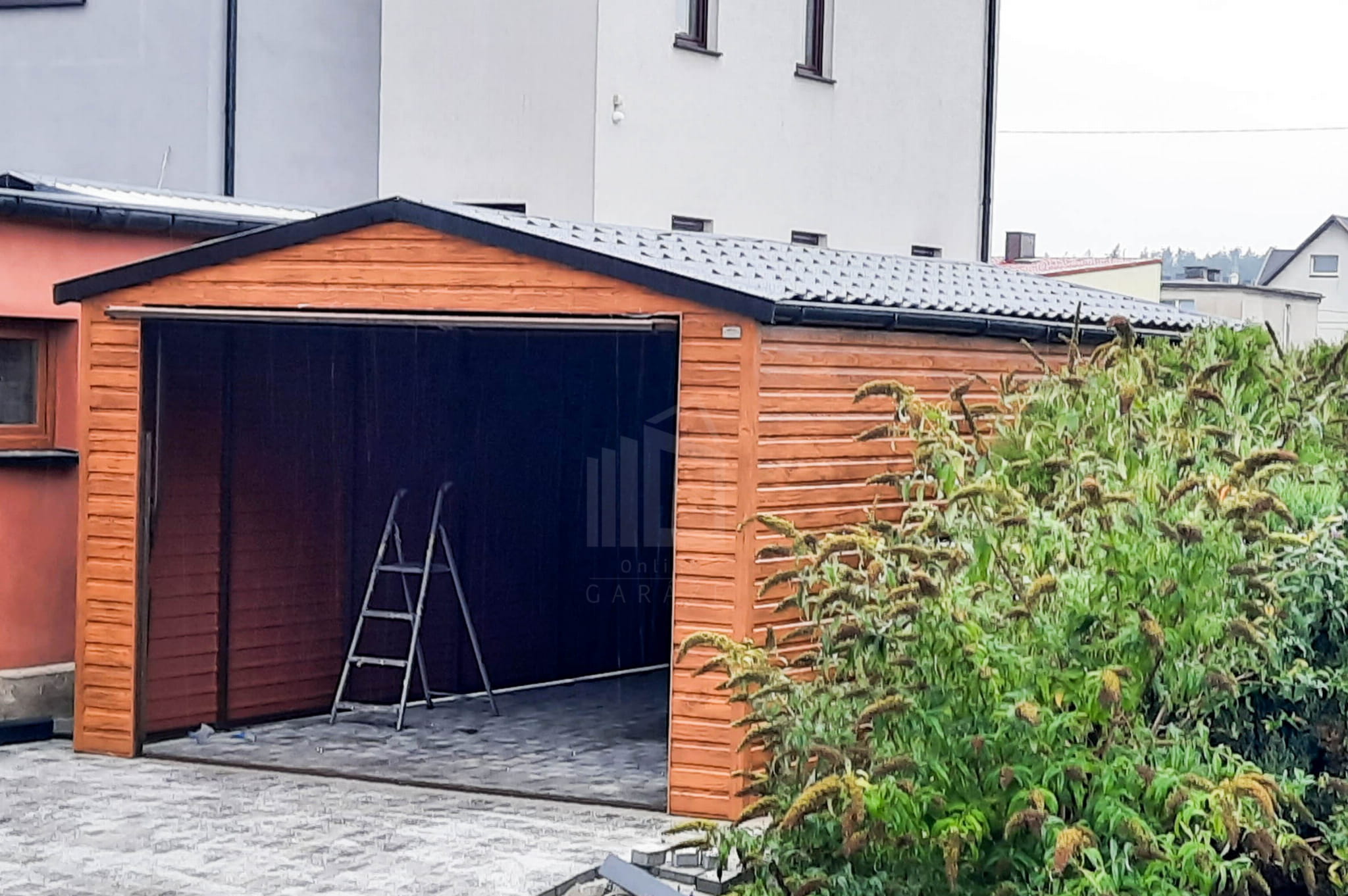 • výklopná brána – vodorovný trapéz T17 – orech svetlý
