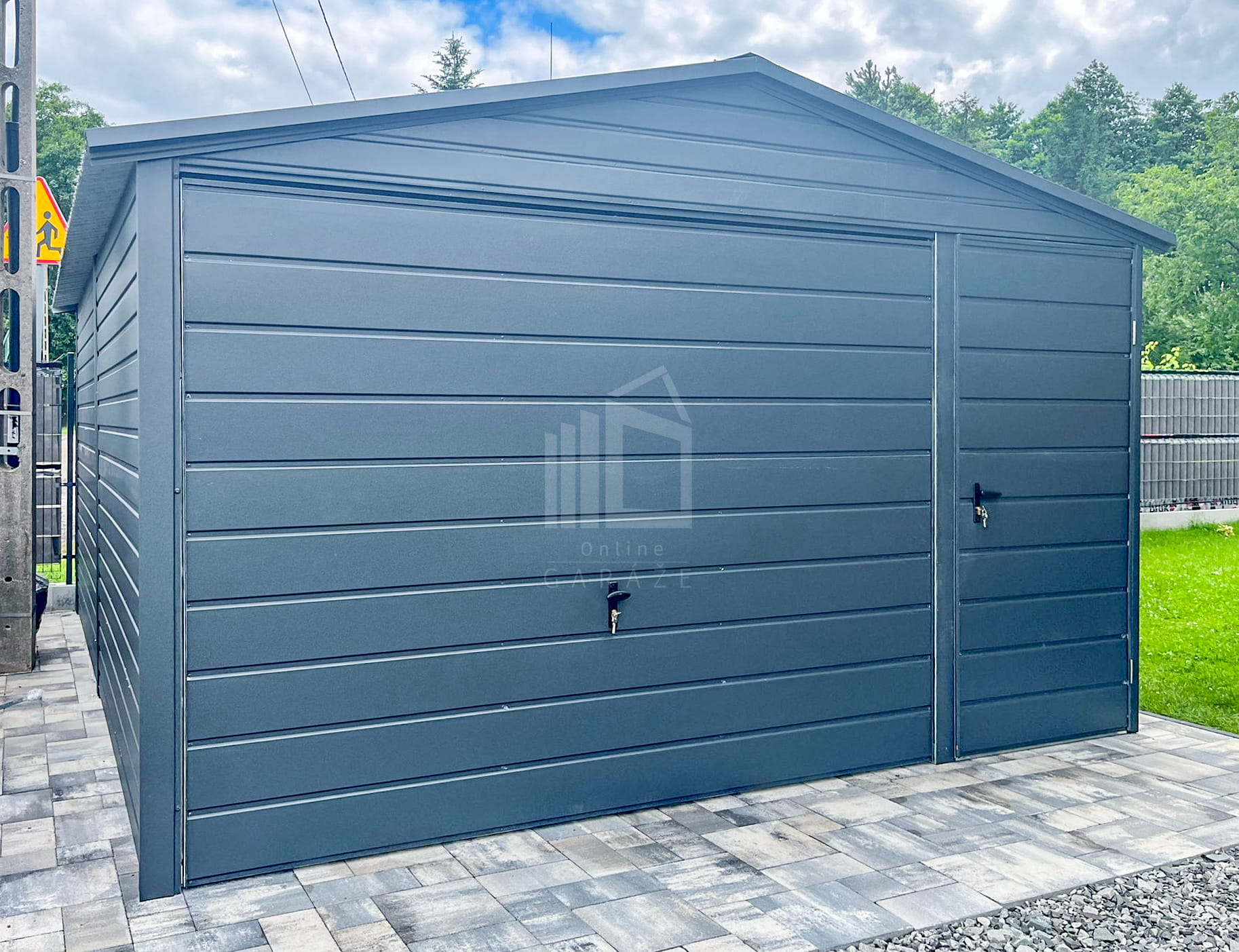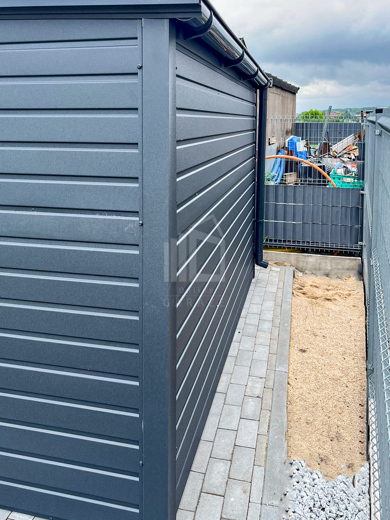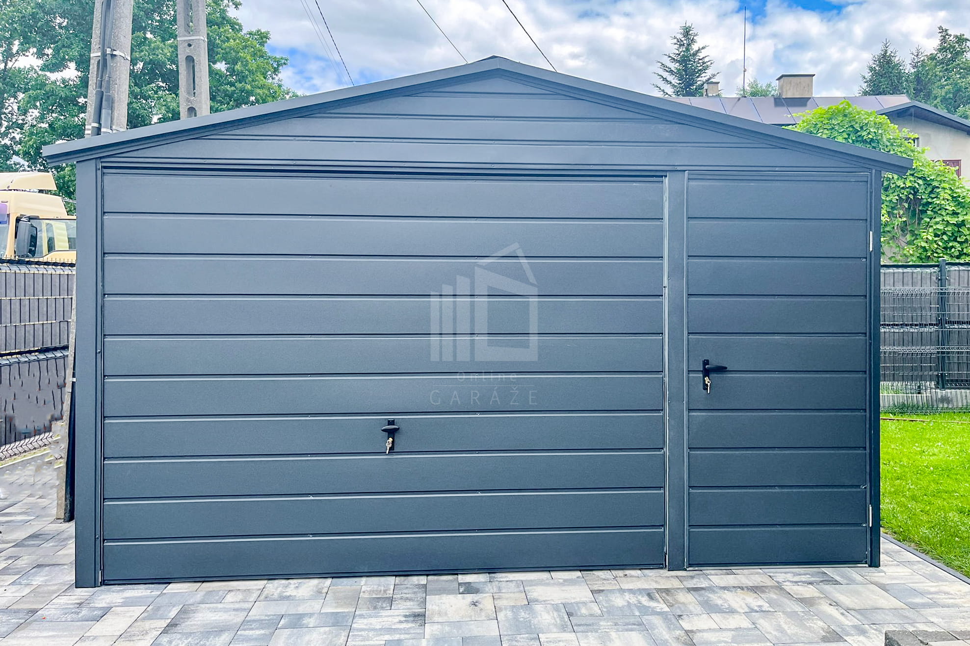 • výklopná brána 300×200 cm prelisy vodorovné T17, farba antracit RAL 7016