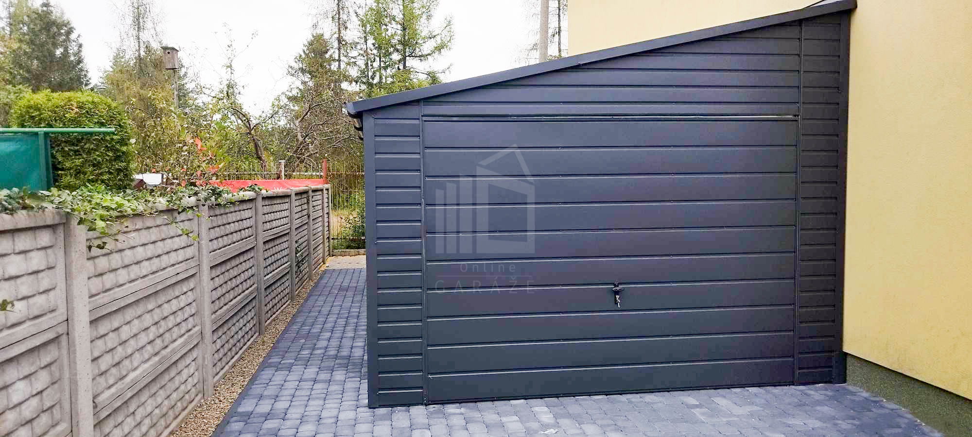 • výklopná brána 300×200 cm – vodorovný trapéz T17 – antracit mat BTX 7016