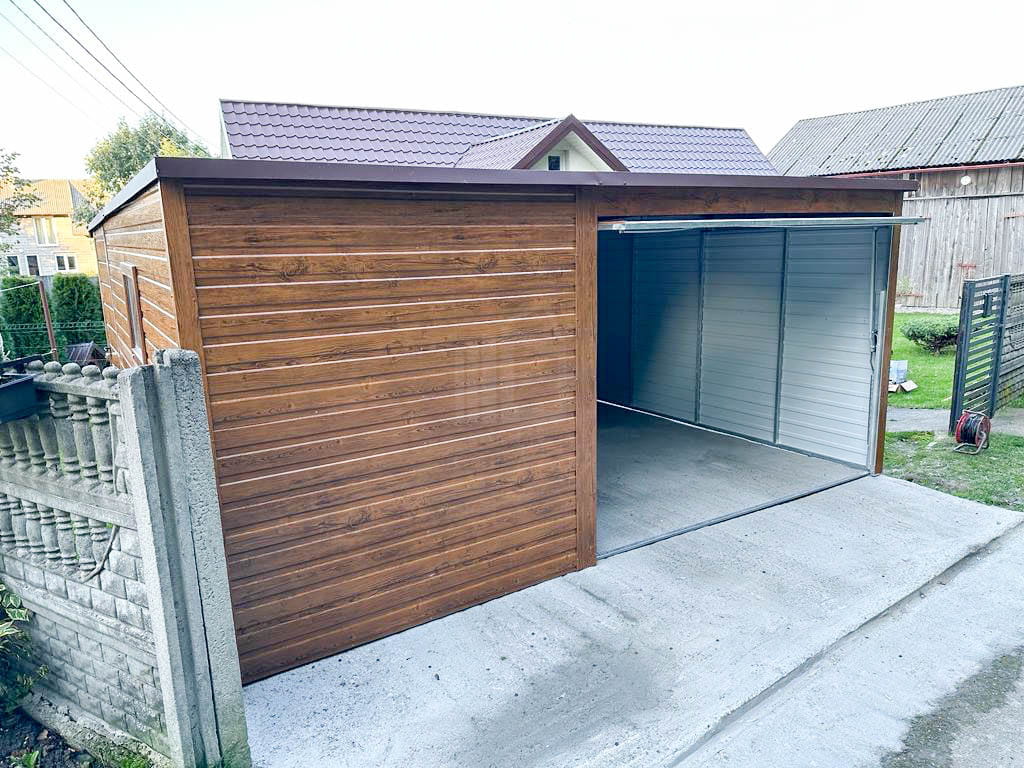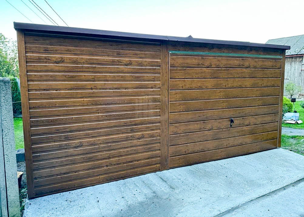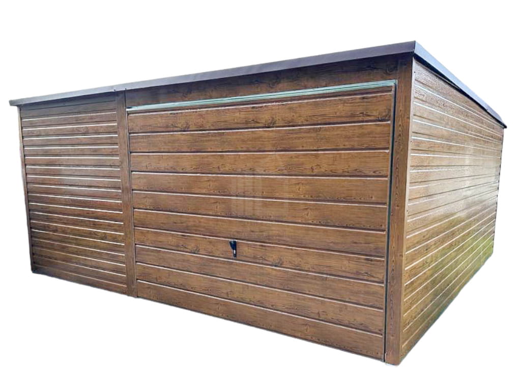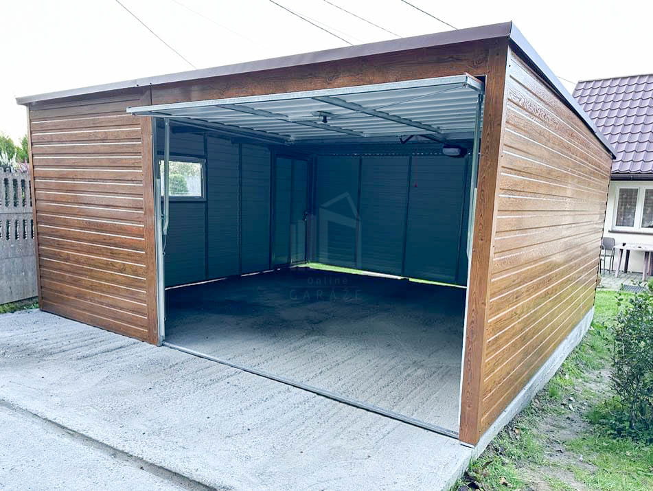 Plechová garáž 5×6 m vodorovný – spád dozadu – výklopná brána + okno TS517 5×6