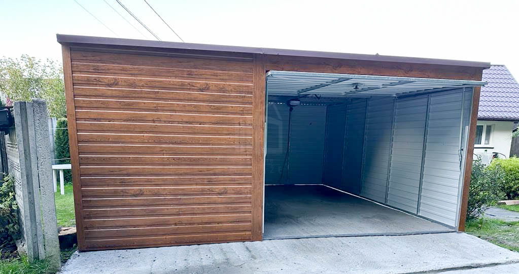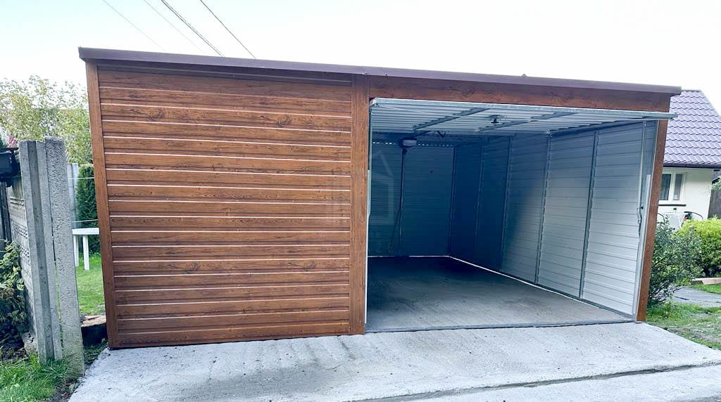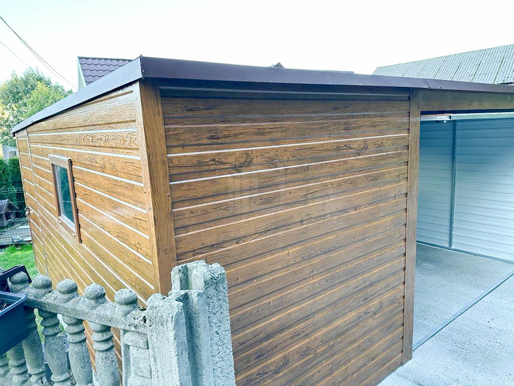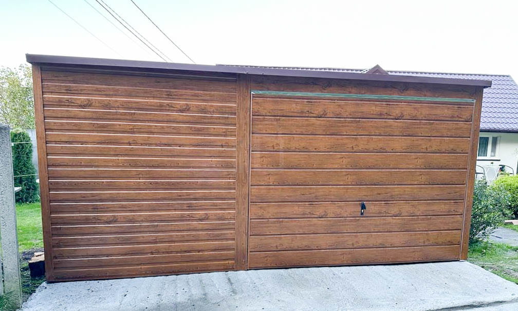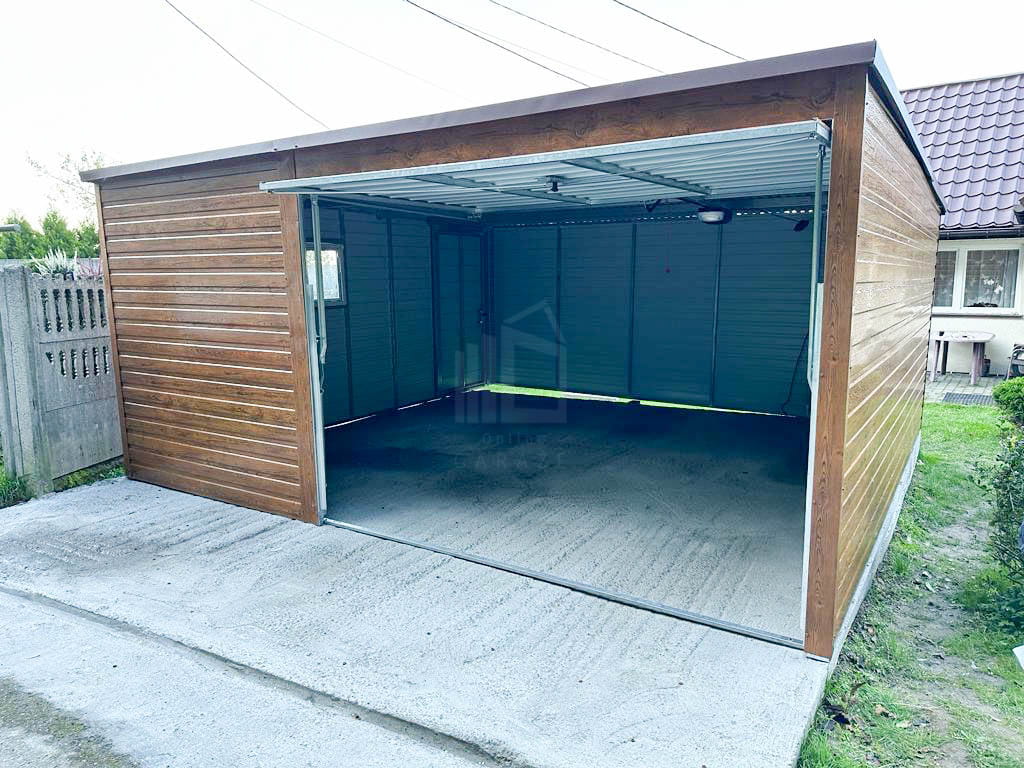 Plechová garáž 5×6 m vodorovný – spád dozadu – výklopná brána + okno TS517 5×6