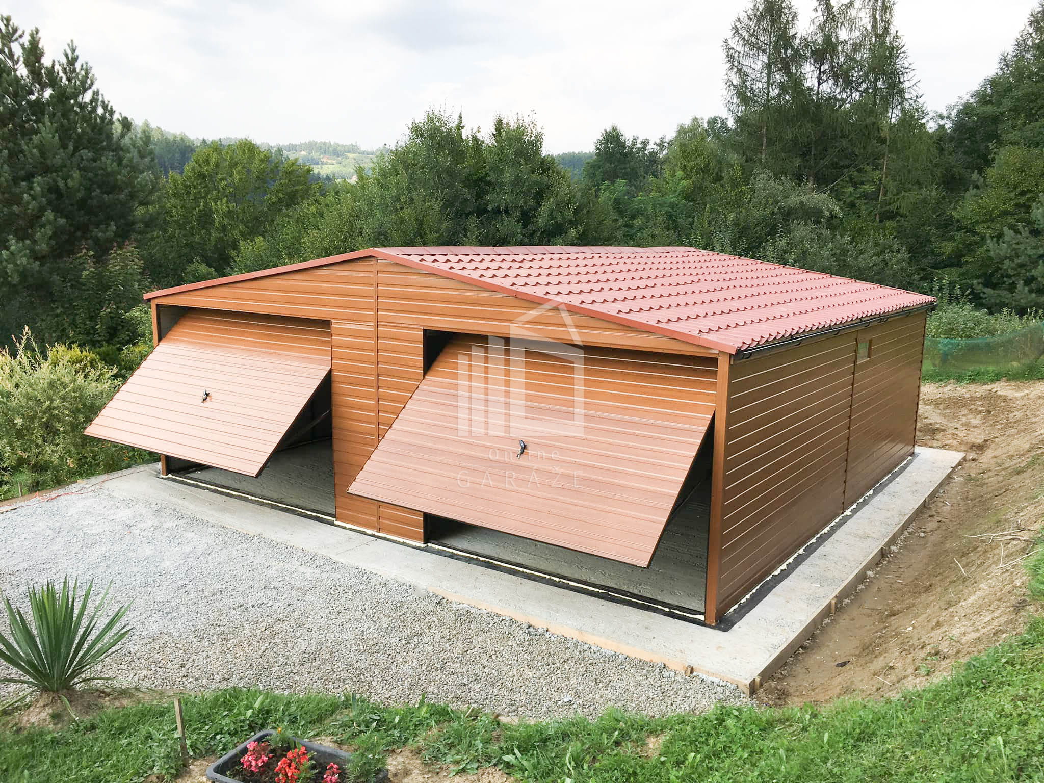 • 2x výklopná brána 300×200 cm vodorovný trapéz T17 farba zlatý dub