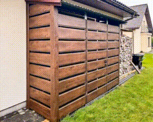 • steny zabudované vodorovnými lamelami (panelmi) farba orech tmavý