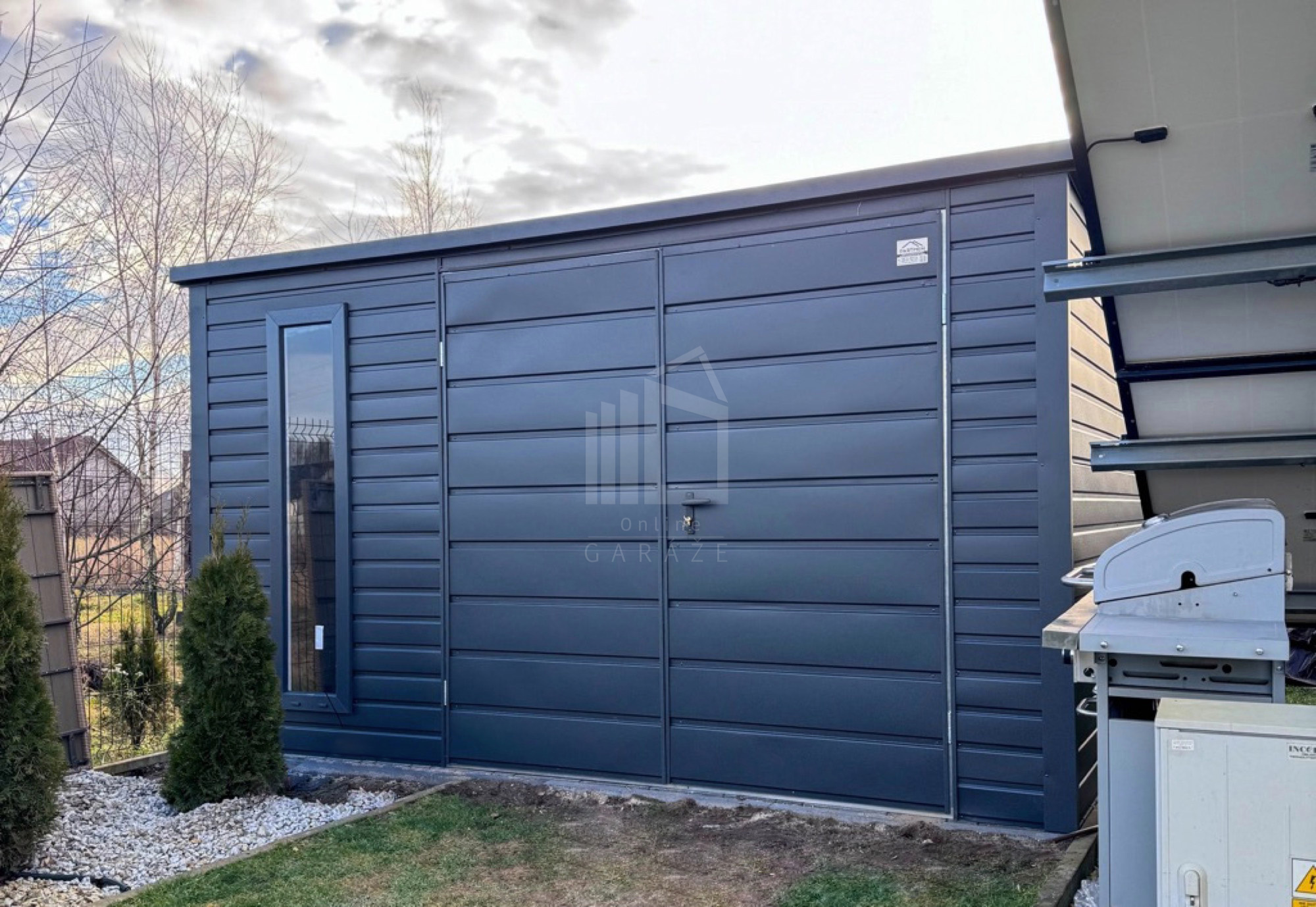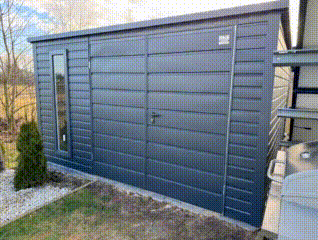 • prístrešok : 0,5×3,5 m predná a zadná stena z vodorovných lamiel (panelov) farba: antracit mat BTX 7016