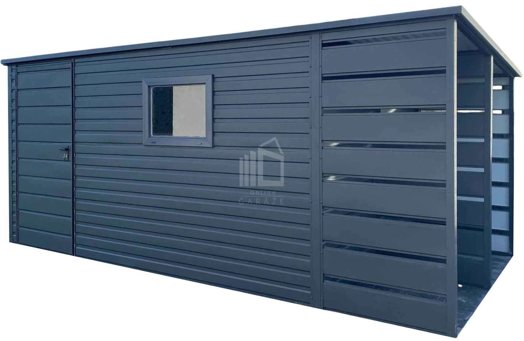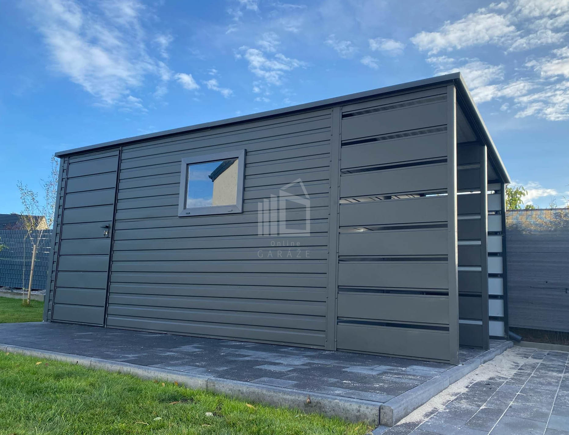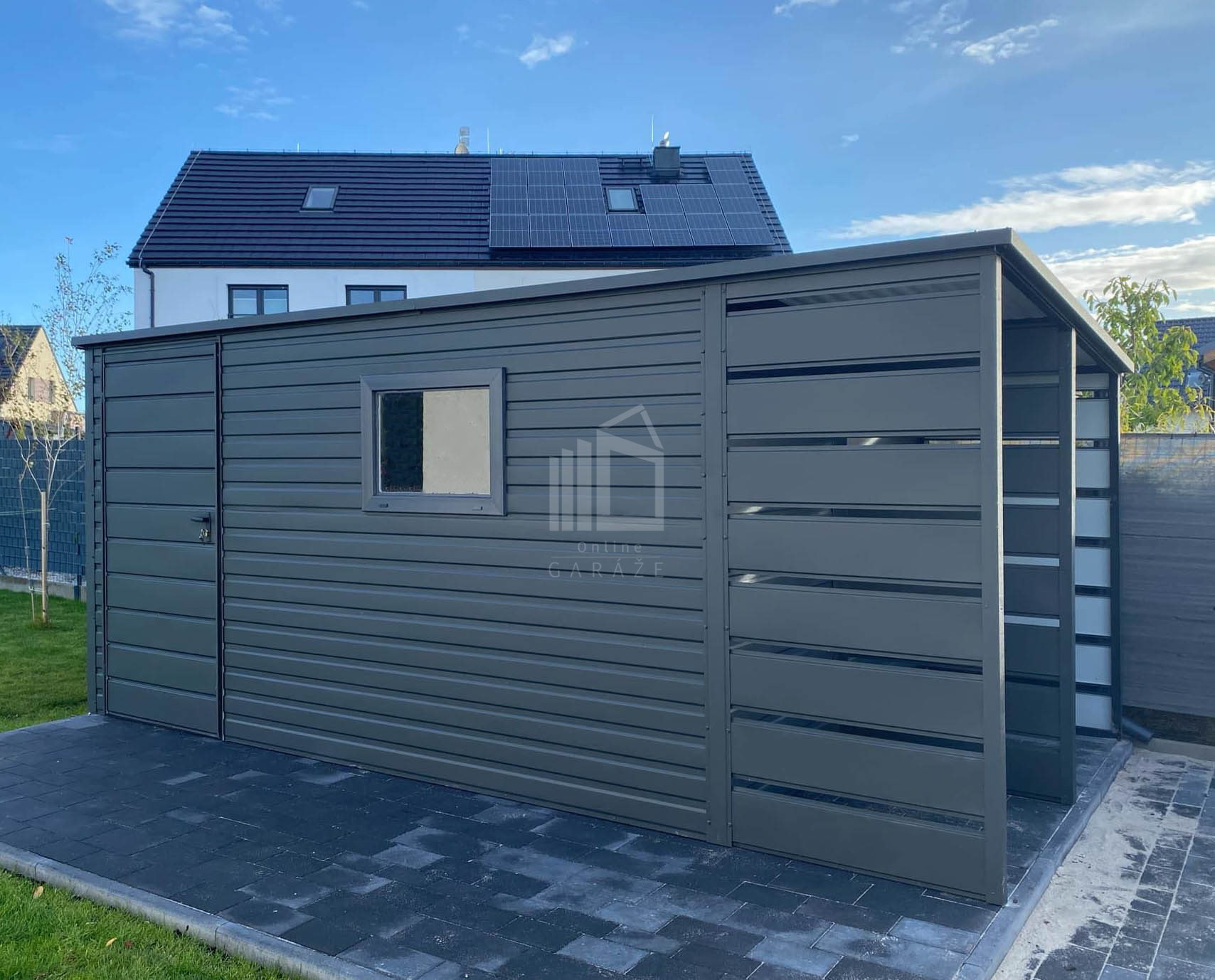 • prístrešok 1,2×2,5 m uzavretý panelmi (predná a zadná stena) + deliaca priečka