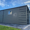 Sklad – Záhradný domček 3,8×2,5 m + prístrešok 1,2 m – dvere – okno – antracit – strecha so spádom dozadu PLG101