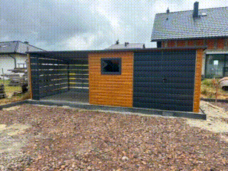• prístrešok : 3,0×2,5 m bočná, zadná a 0,5 m prednej steny z vodorovných lamiel (panelov) farba : antracit BTX 7016
