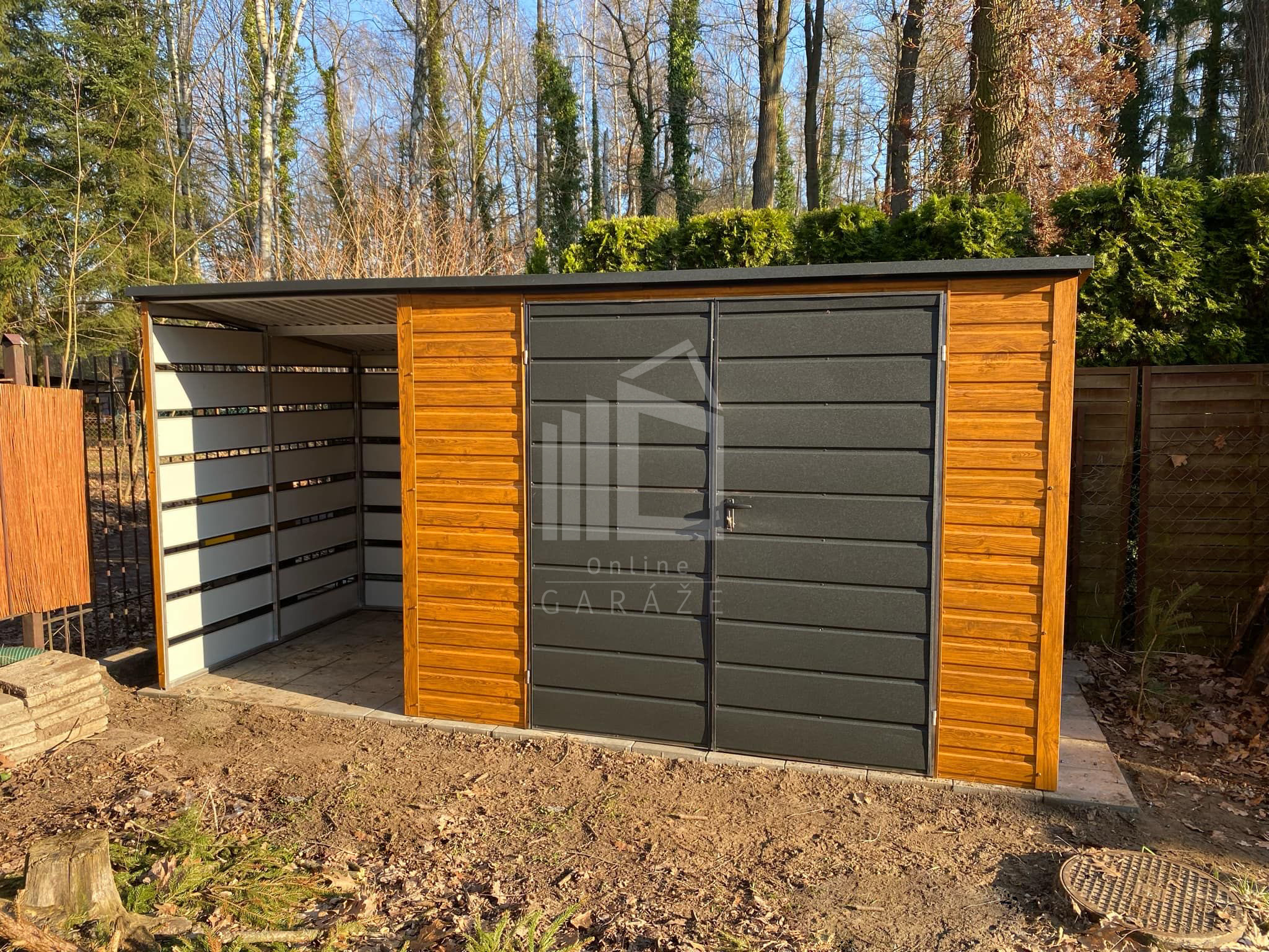 • prístrešok 1,5x2m uzavretý panelmi farba Tmavý Grafit Antracit RAL 7016