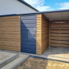 • prístrešok : 1,5×2 m uzatvorený bočnou a zadnou stenou panelmi farba: svetlý orech