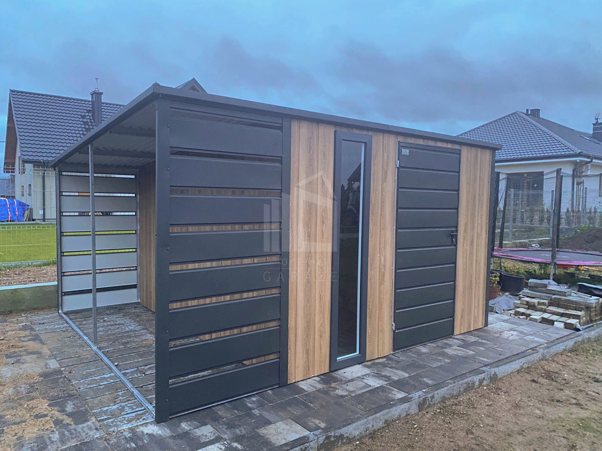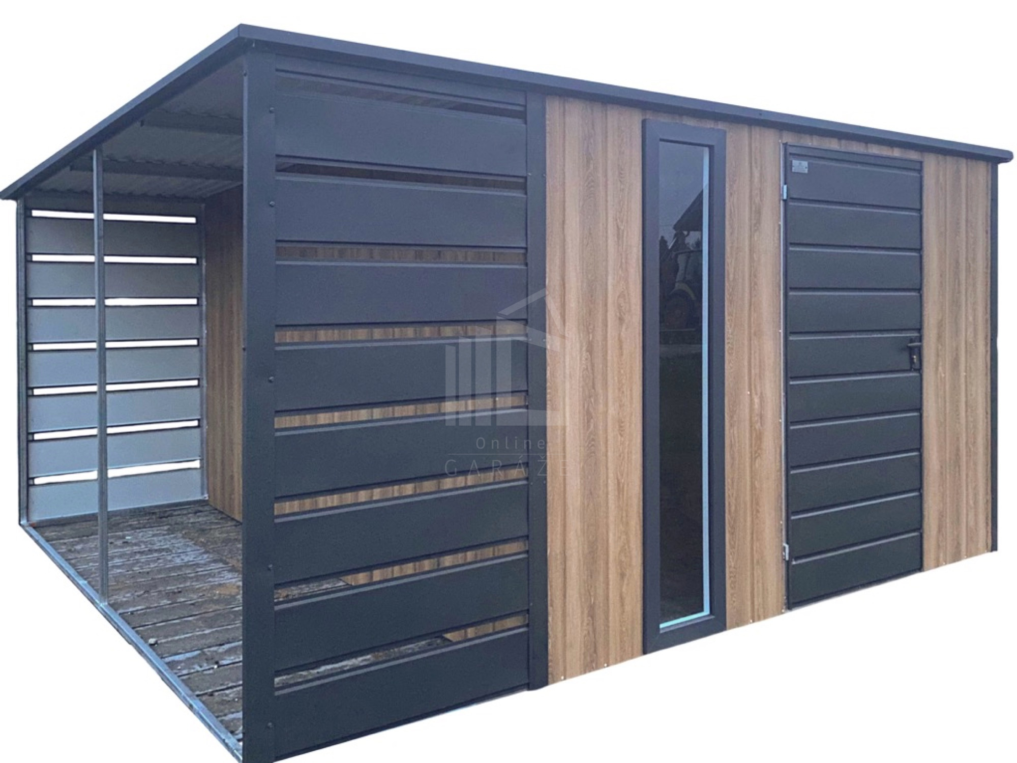 • prístrešok : 1×3 m predná a zadná stena z vodorovných lamiel (panelov) farba : antracit mat BTX 7016