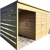 Záhradný domček 2x2m + prístrešok 1,5m – dvere – imitácia dreva – winchester – imitácia dreva – strecha spád dozadu TS1160