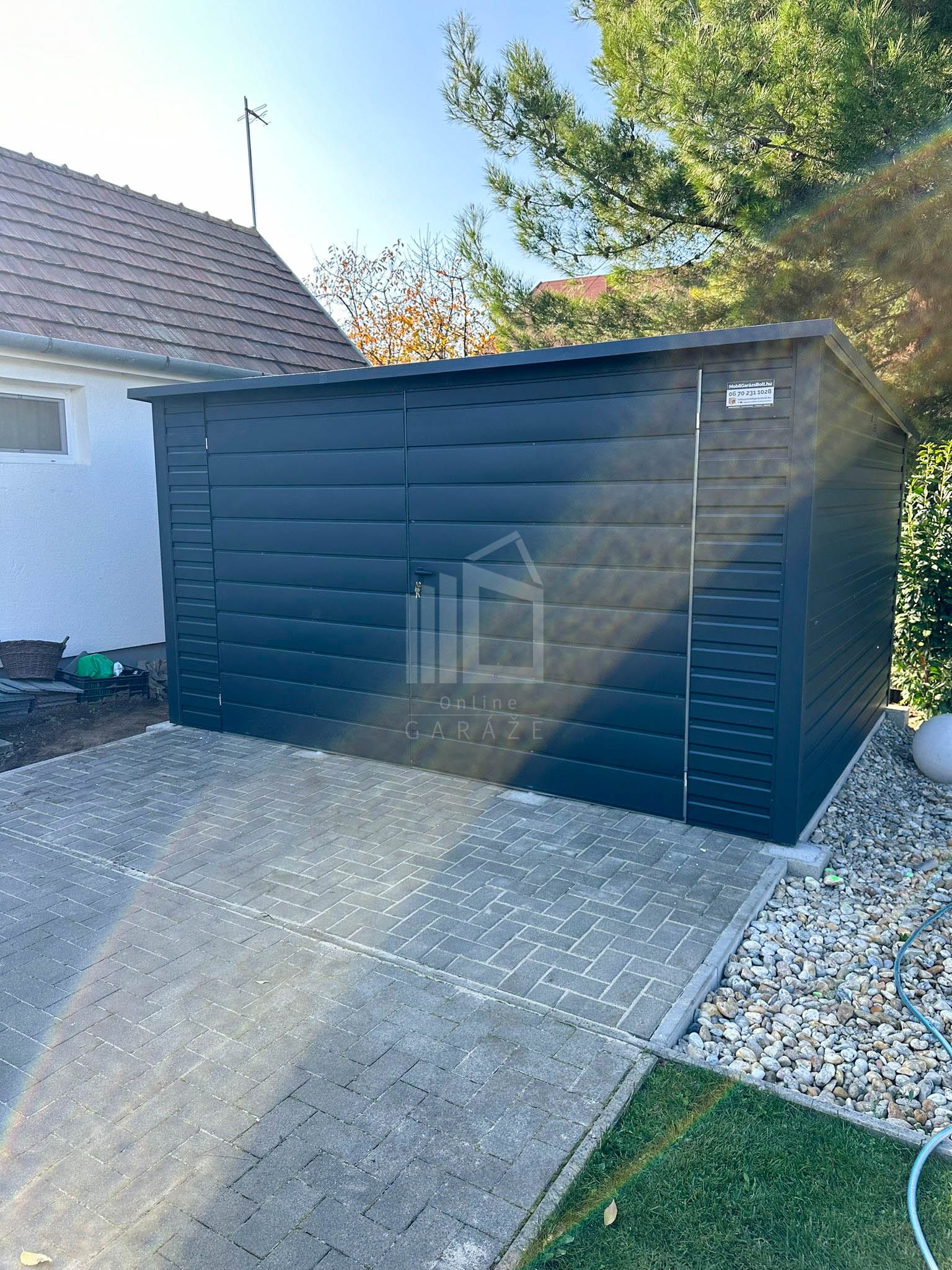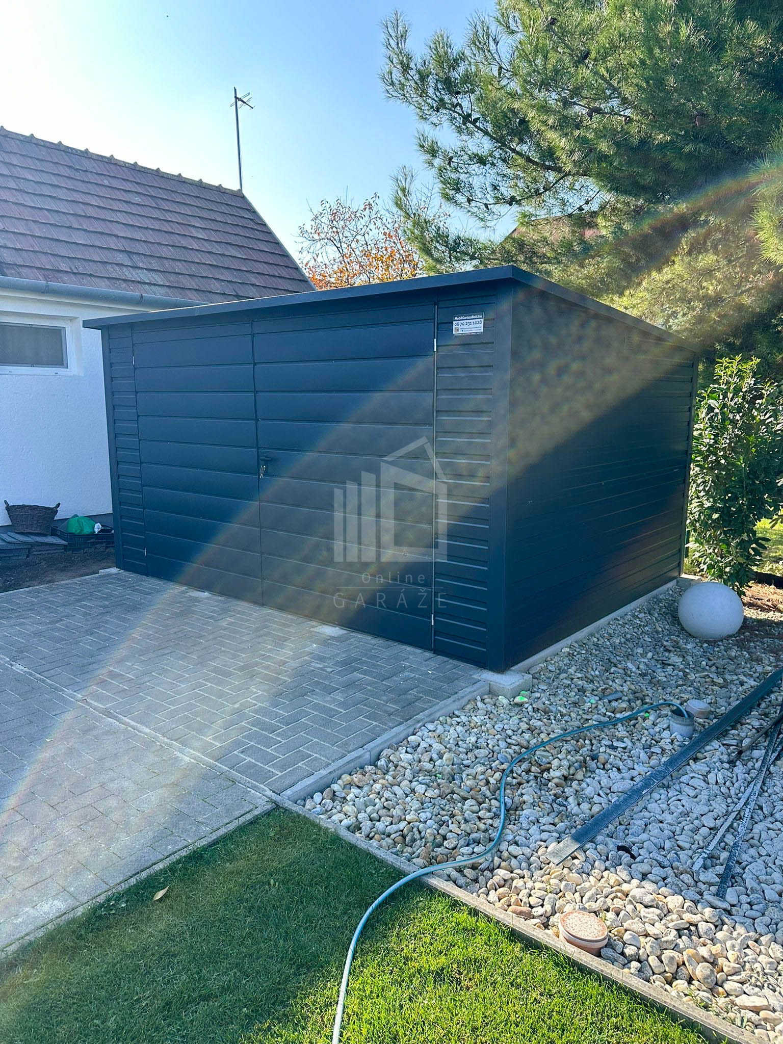 Sklad – Záhradný domček 4x3m – Dvojkrídlová brána – Antracit – spád dozadu TS868