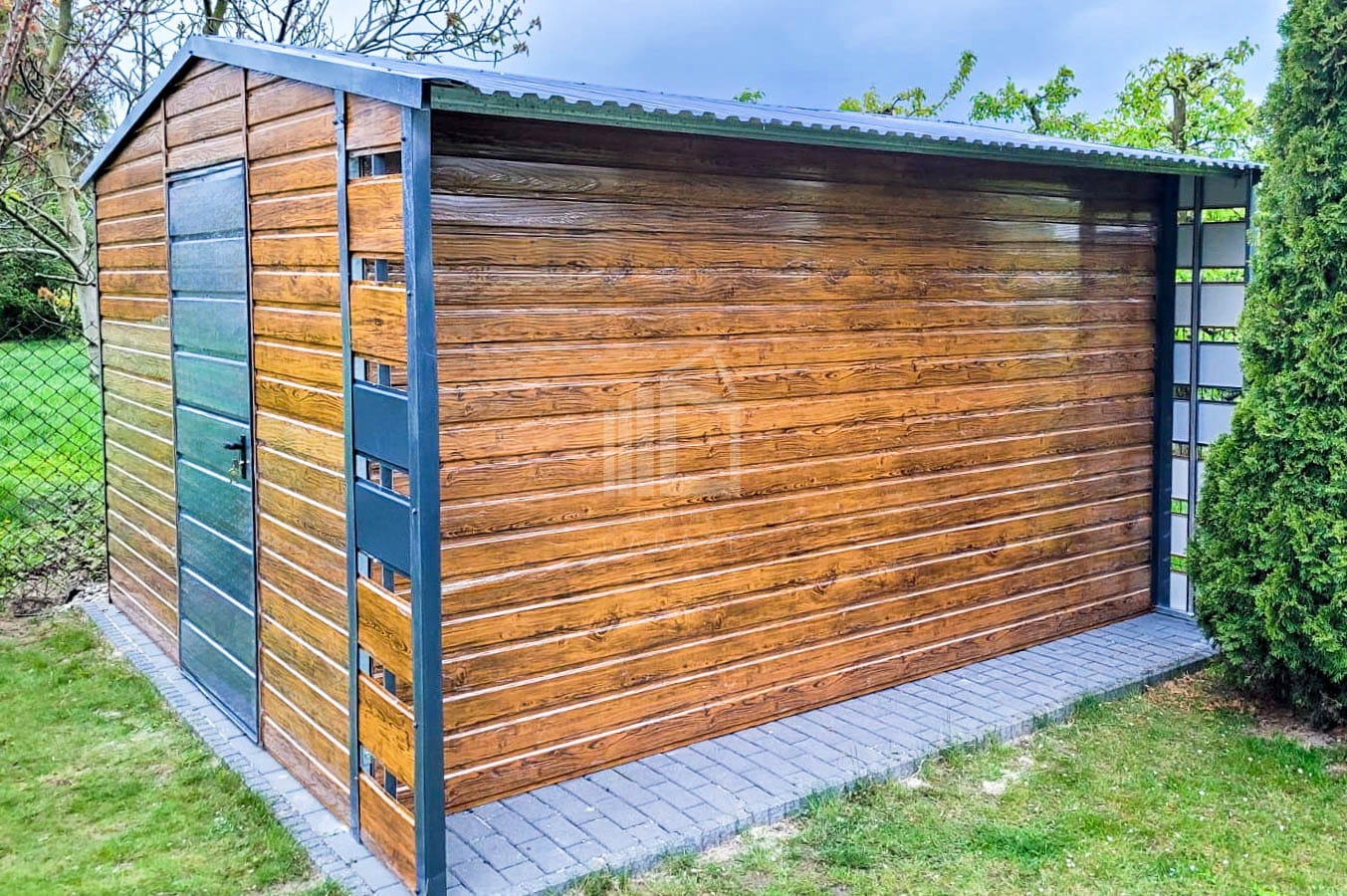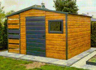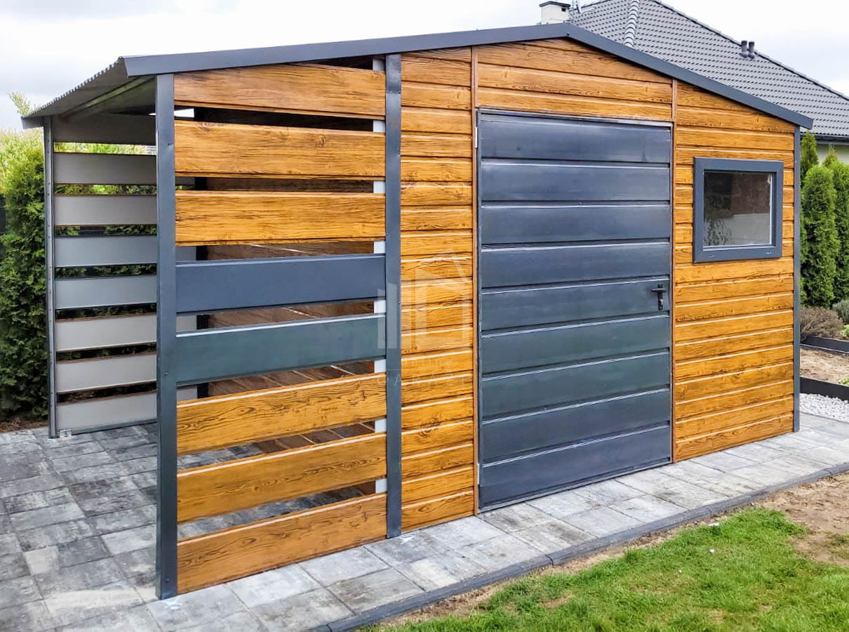 • Prístrešok 1×2,5 m, predná a zadná stena z vodorovných lamiel (panelov)