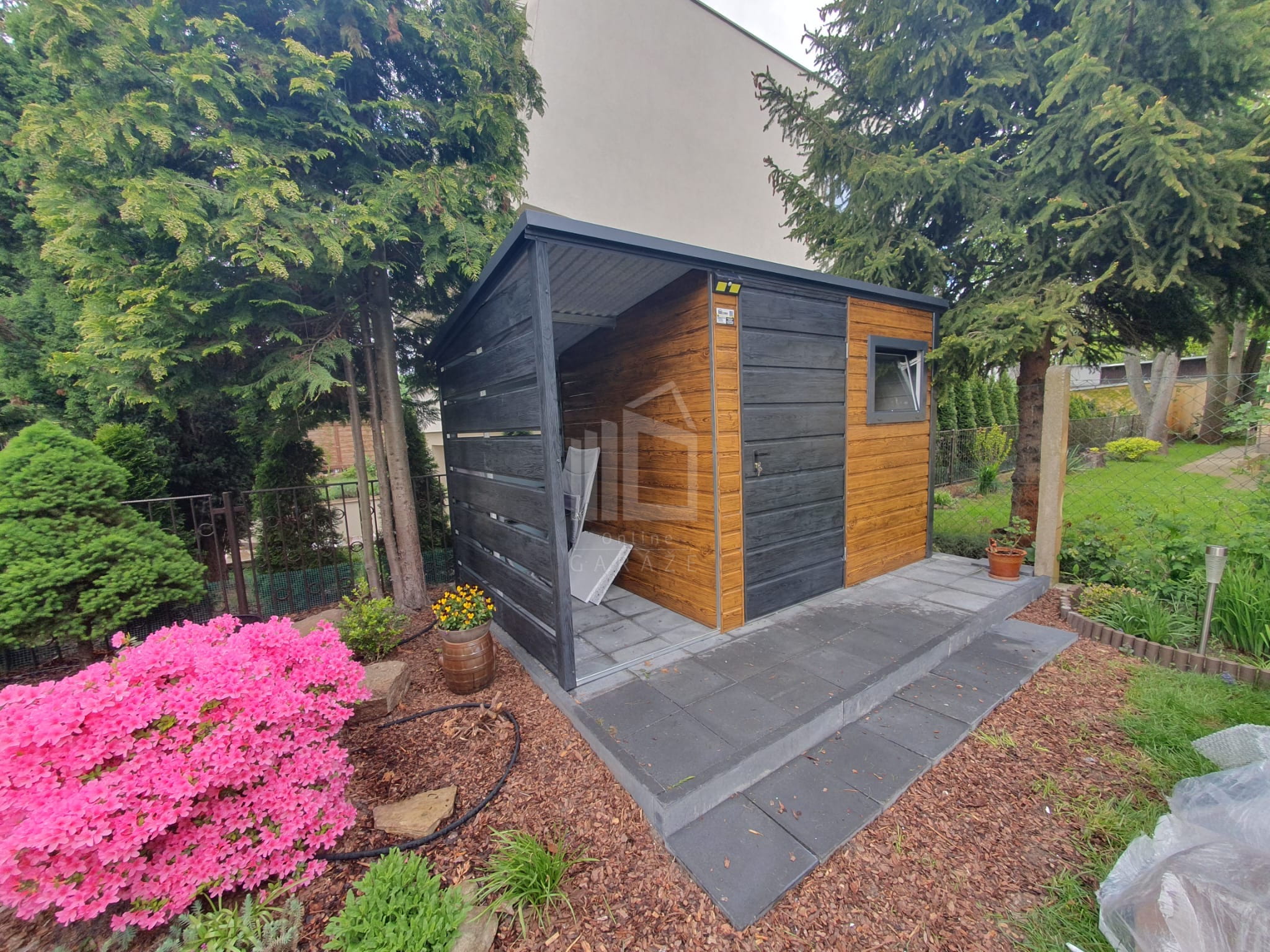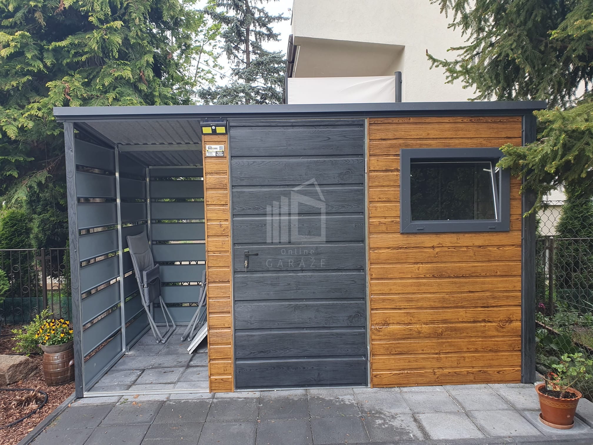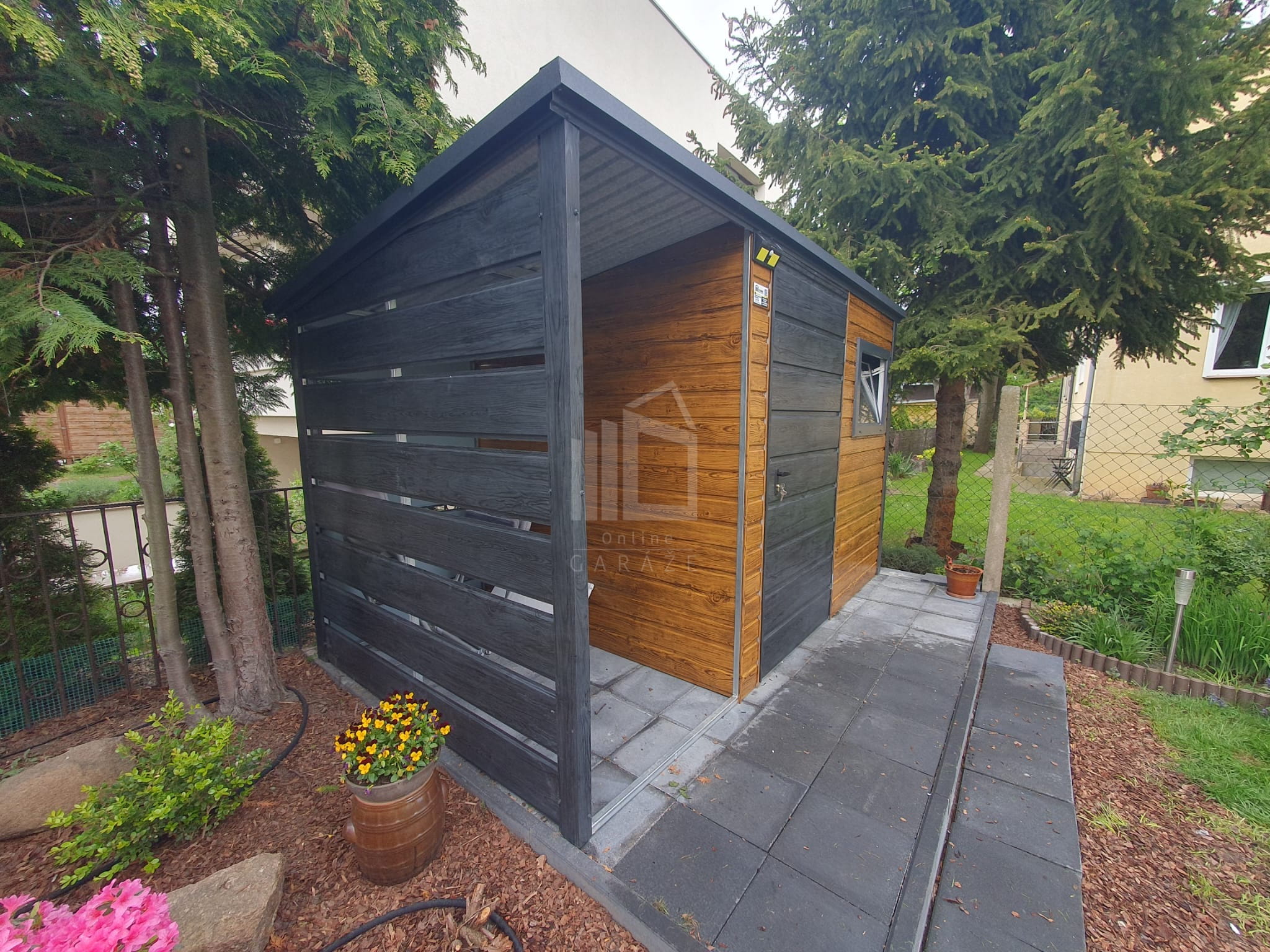• prístrešok 1×2,5 m zabudovaný panelmi, farba nórska borovica