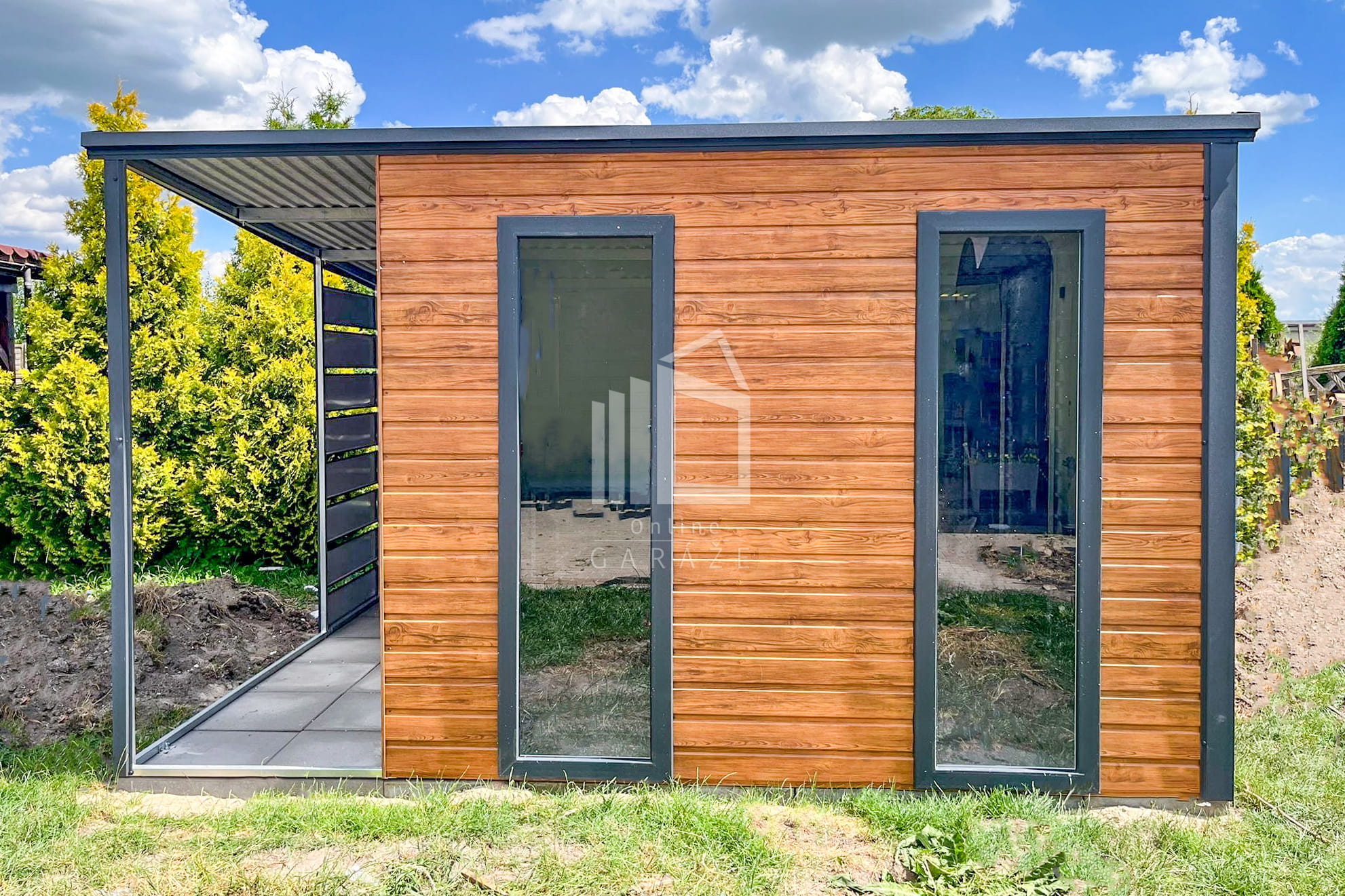 • prístrešok 1×3 m zabudovaný panelmi, farba antracit RAL 7016