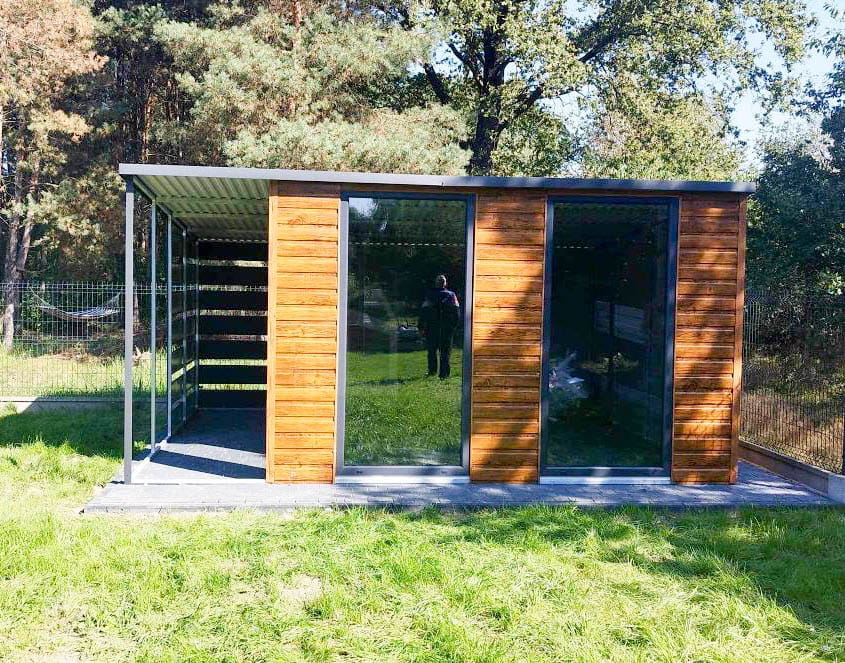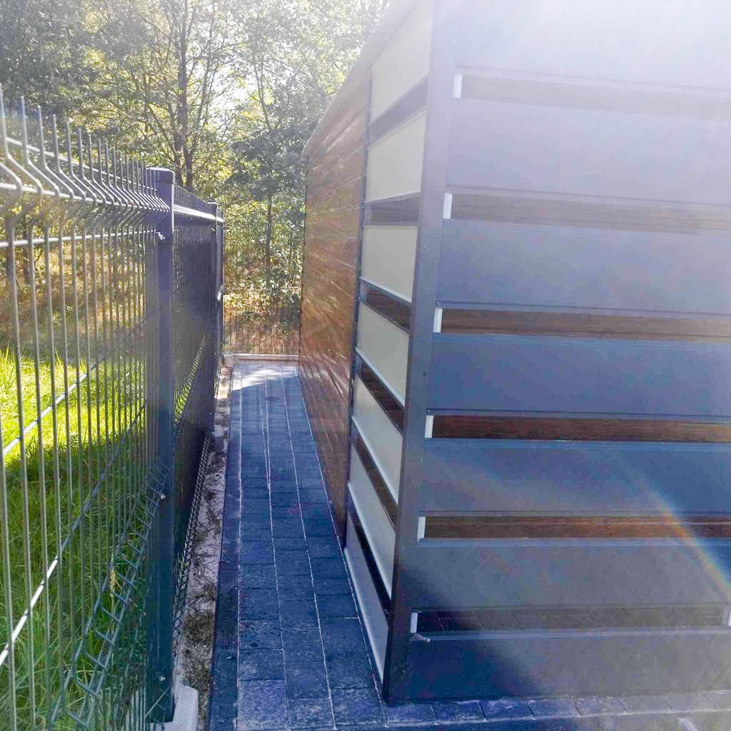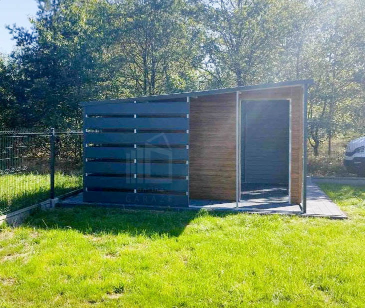 • Prístrešok 1×4 do polovice zakrytý lamelami/lištami