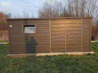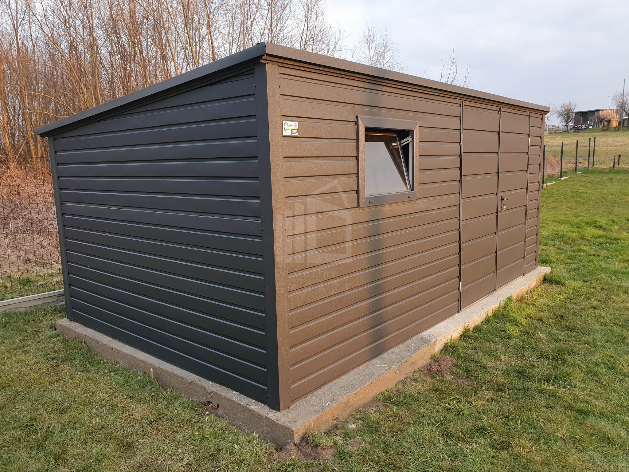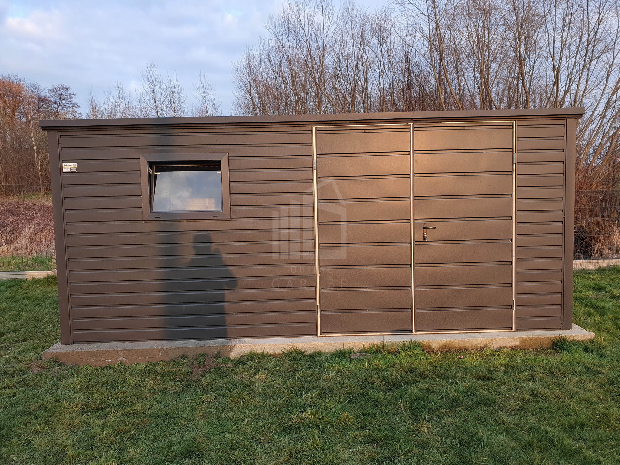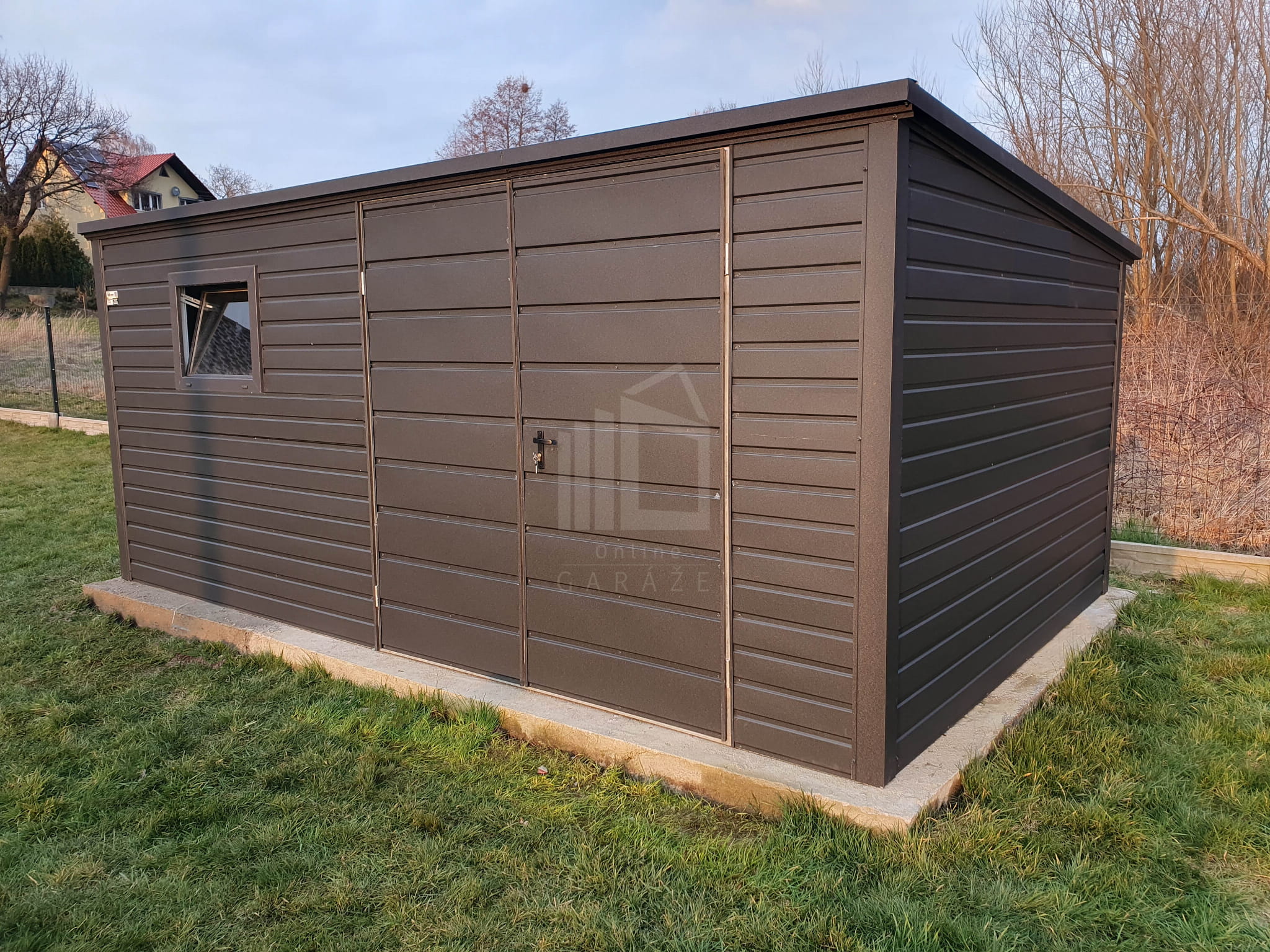 Záhradný domček 4,5x3m – Dvojkrídlové dvere – Okno – Antracit – Strecha spád dozadu TS624