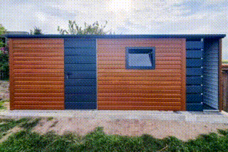 • Prístrešok 1x3m, zabudovaný v plnej miere + vodorovné lamely (panely)