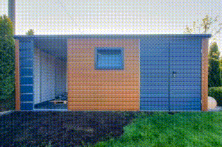 • Prístrešok 1,5×2,5 m zabudovaný, z prednej strany 50 cm zabudované panelom