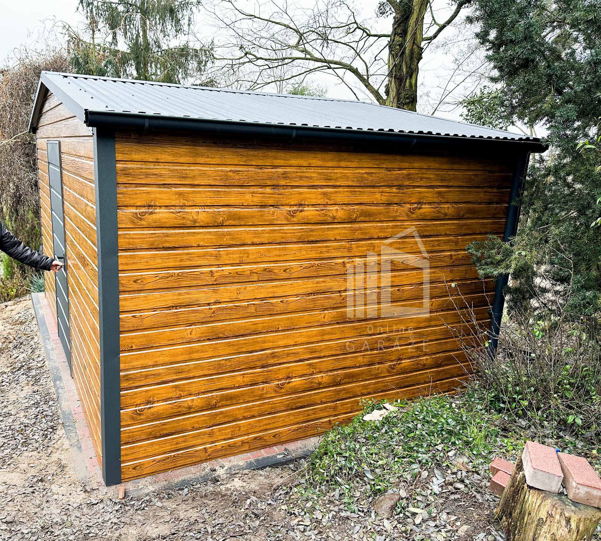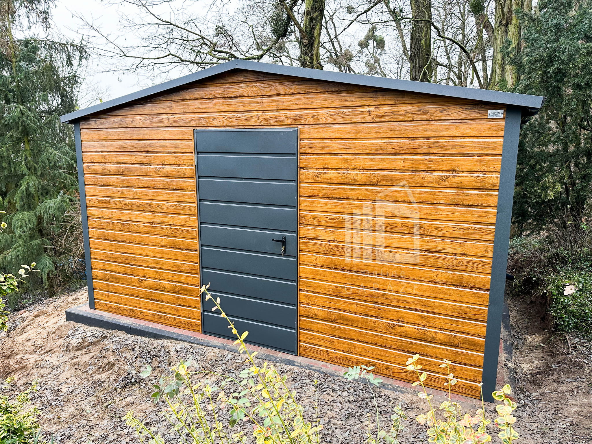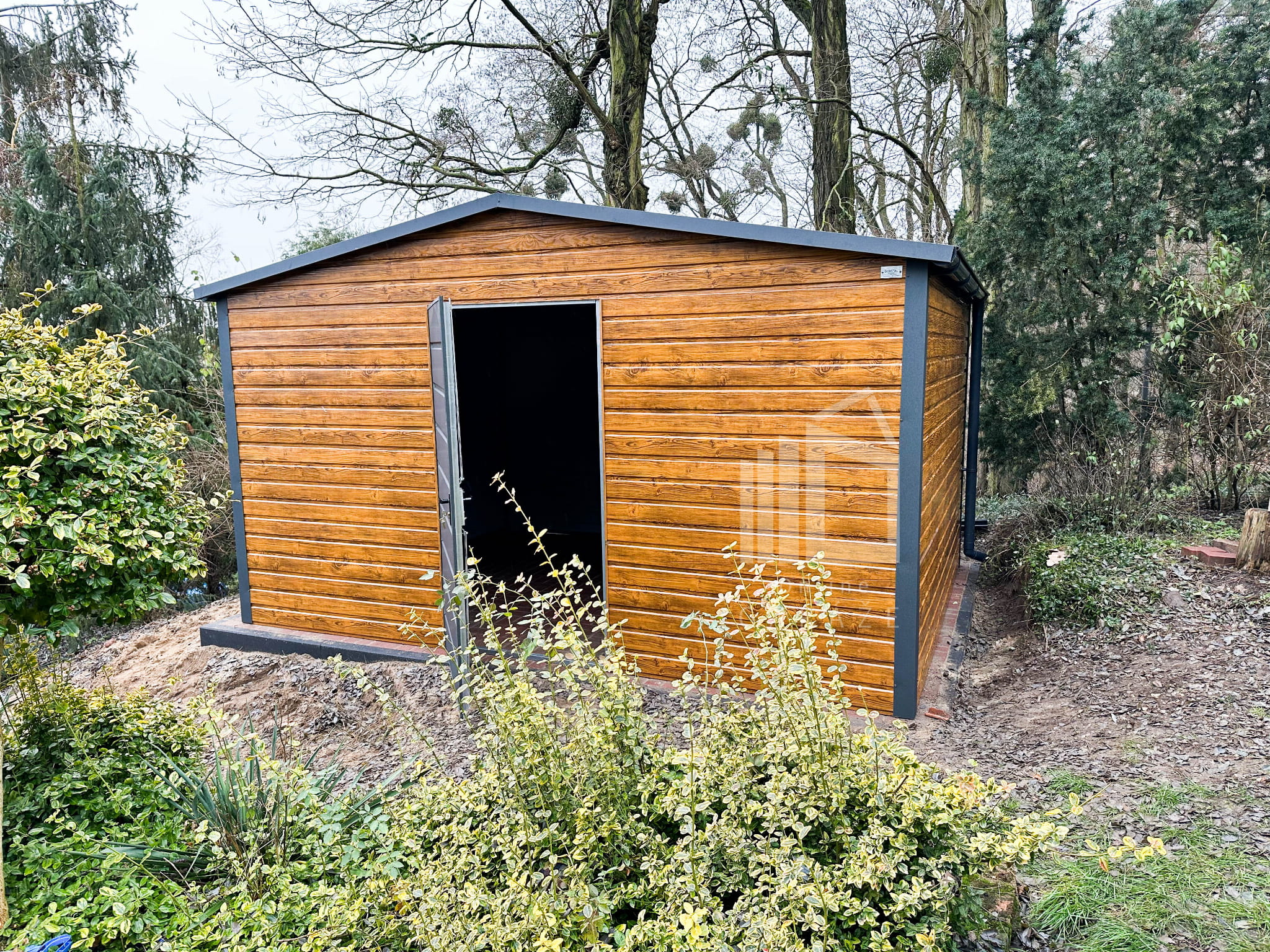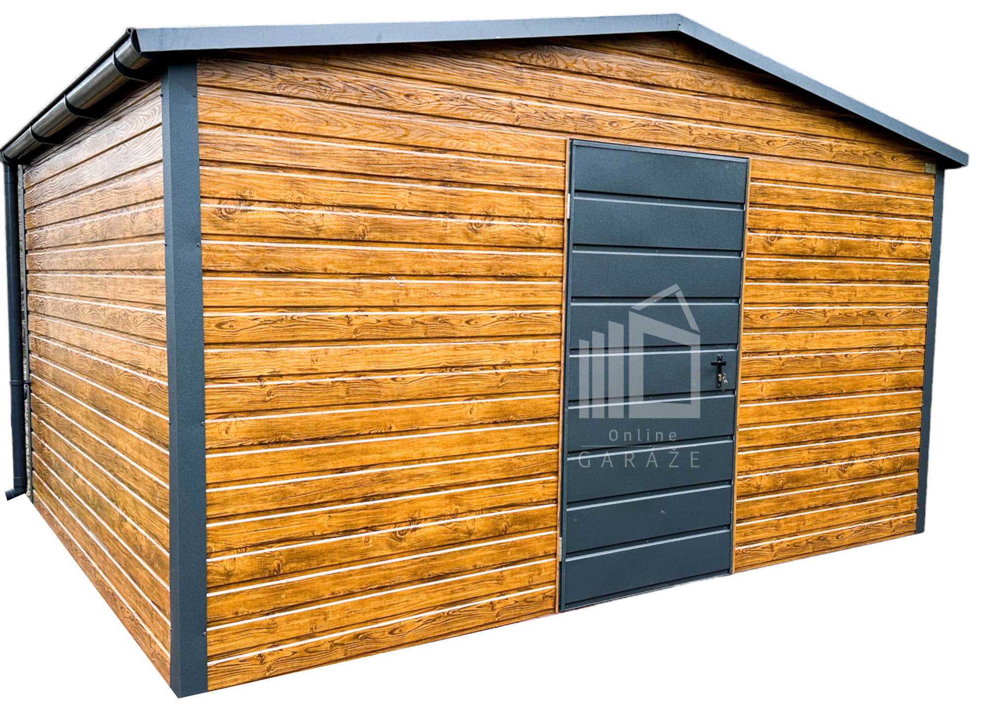 Záhradný domček 4×3 – drzwi – dvere – Antracit + svetlý orech – drewnopodobny – rýna okapová- strecha dvojspádová (sedlová) TS530