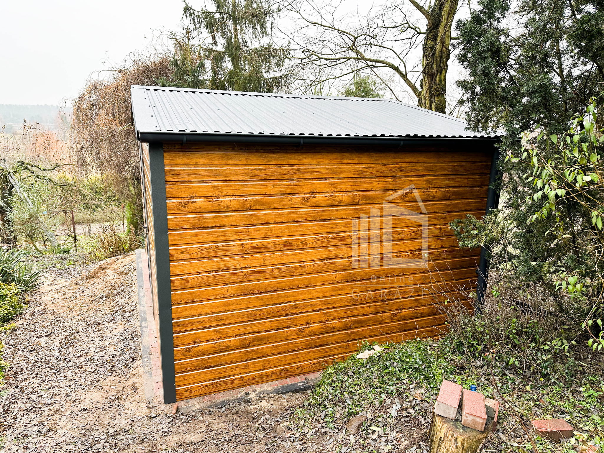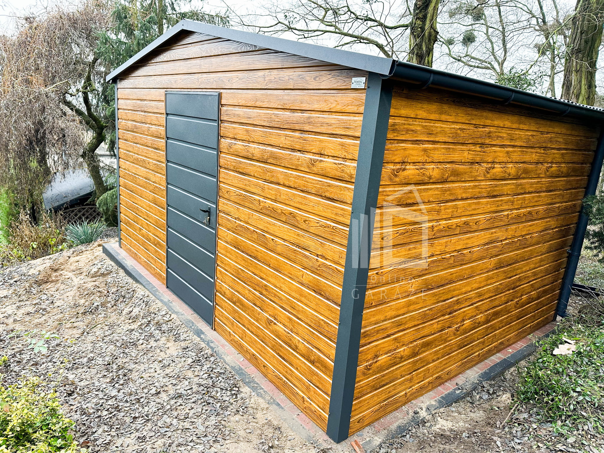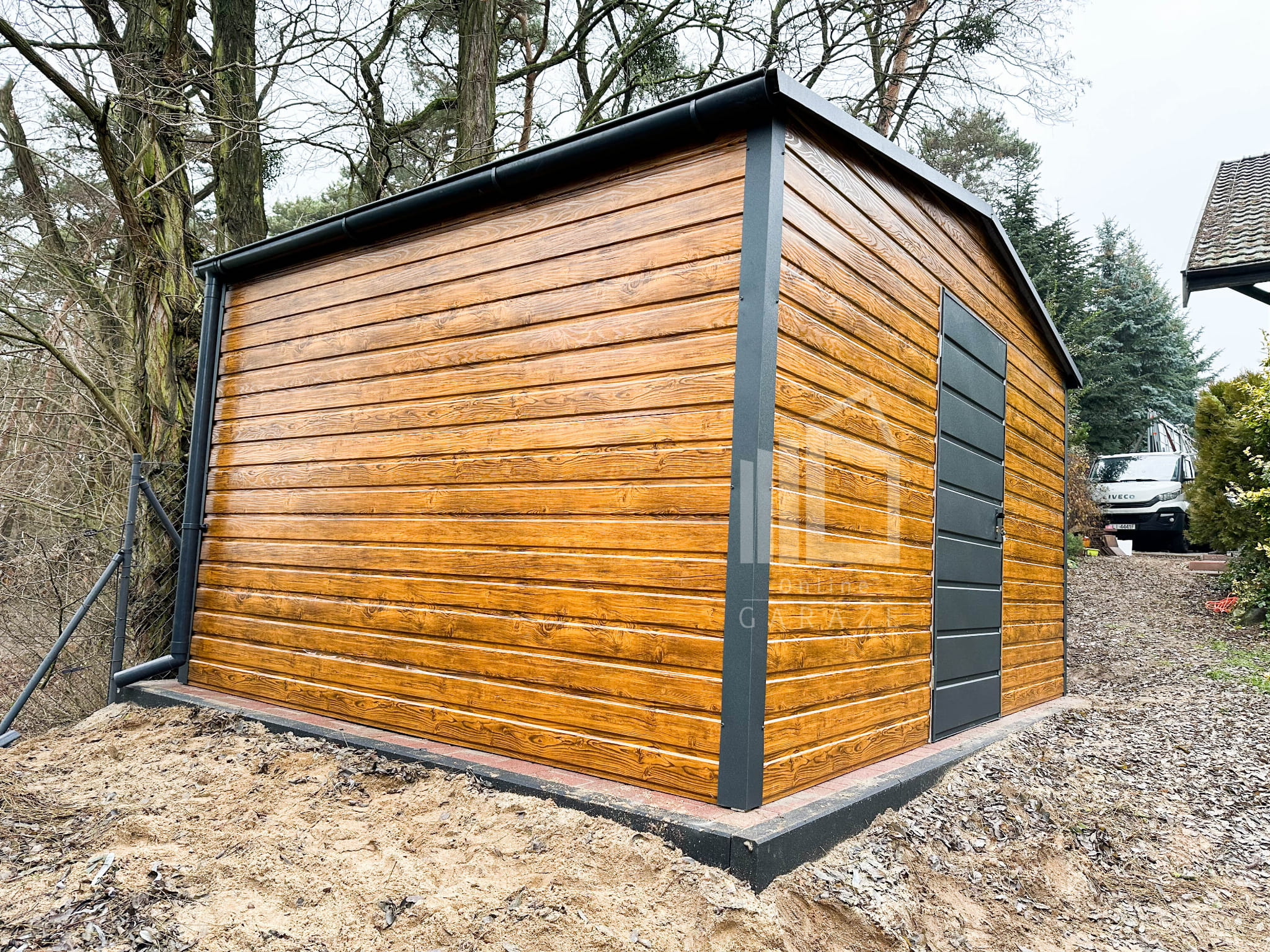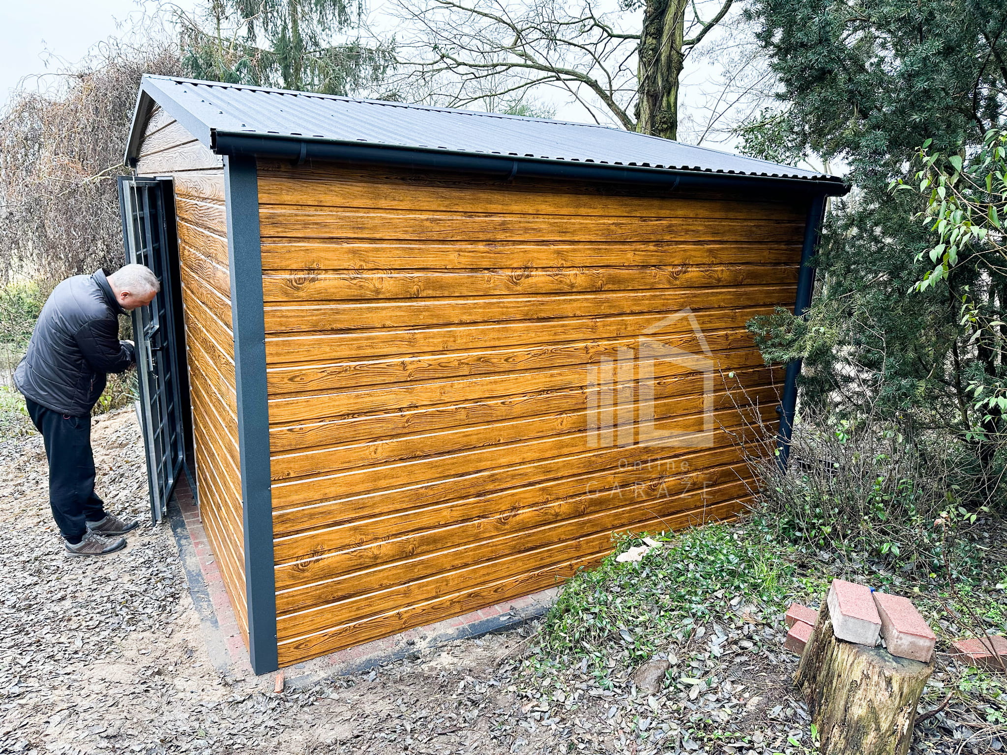 Záhradný domček 4×3 – drzwi – dvere – Antracit + svetlý orech – drewnopodobny – rýna okapová- strecha dvojspádová (sedlová) TS530