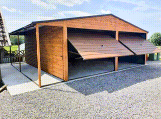Plechová garáž 6m x 6m vodorovný – dvojspádová – 2x výklopná brána – dvere – prístrešok TS250 6×6.