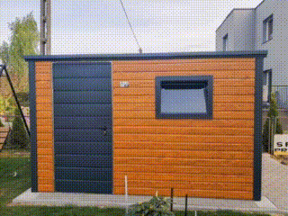 Záhradný domček 3x2m – dvere – okno – svetlý orech – drevodekor – strecha so sklonom dozadu TS1083