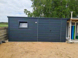 Sklad – Záhradný domček 4,5×2 m – dvojkrídlová brána – okno – antracit – strecha so spádom dozadu TS1078