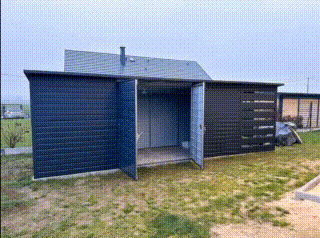 • prístrešok 1,5×2 m zabudovaný z vodorovných lamiel (panelov) farba antracit mat BTX 7016